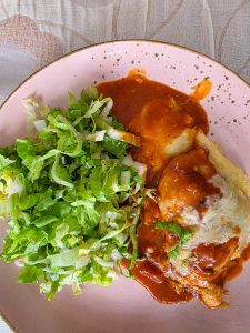 Sunday – We had oven chicken topped with melted cheese and noodles