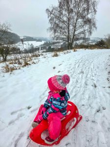 Since it snowed the temparatures have dropped and we enjoyed going sleighing the whole weekend. The two big girls had so much fun in the snow.