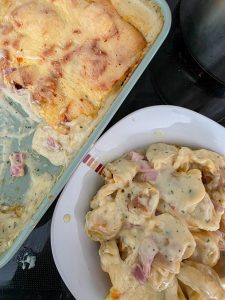 Friday – Tortellini Casserole with ham, cheese and heavy cream sauce