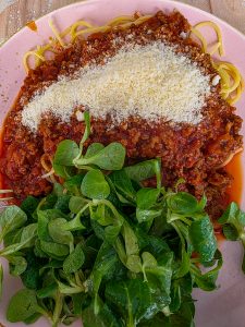 Sunday – We had Pasta Bolgnese at my MIL´s and she also made a huge cheese cake. It was so flavorful and delicious.