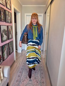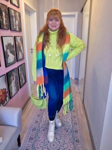 I am not a beige person. I do not hate beige and have beautiful beige pieces in my closet but I don´t only wear beige. Color has always been in my life, my home and my closet. I have been wearing colorful looks years before the fashion society called it „dopamine dressing“ and have always loved it.