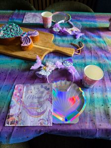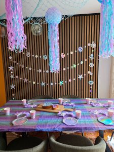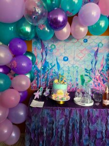The theme was 12/10. I always knew that there was so much things to choose from but never ever have I thought I am going to have so much fun with the mermaid theme. Emilia only gave me the very important colors for her cake – pink, purple and turquoise and I just worked my way around it. All of my birthday decorations are a mix of SheIn, amazon and Temu. They just offer the biggest selection to great prices.