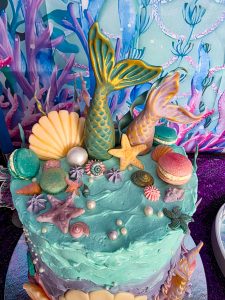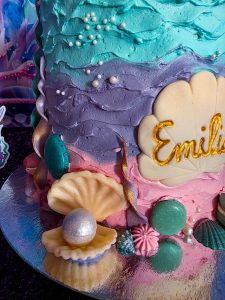 I probably sound like a broken record on this but it was the most beautiful cake we have ever had. I mean the details are just impeccable. have you seen all the different shells on top of it. The pearls and waves. The mermaid tales.