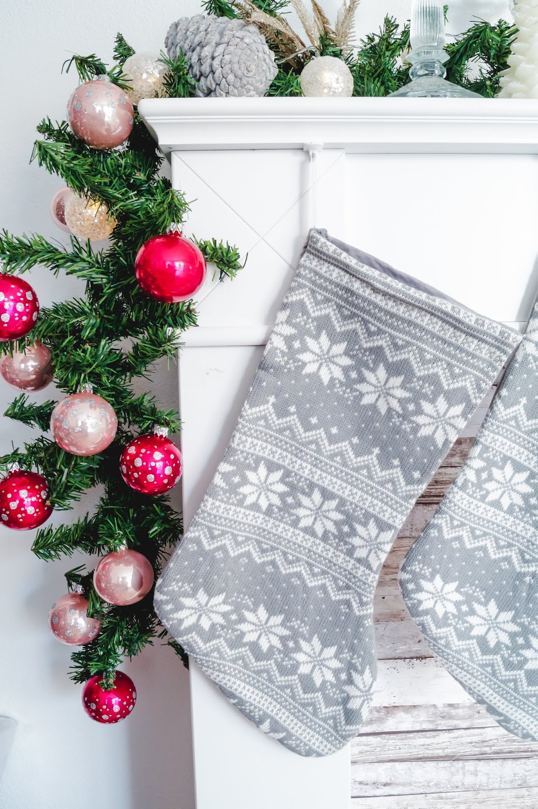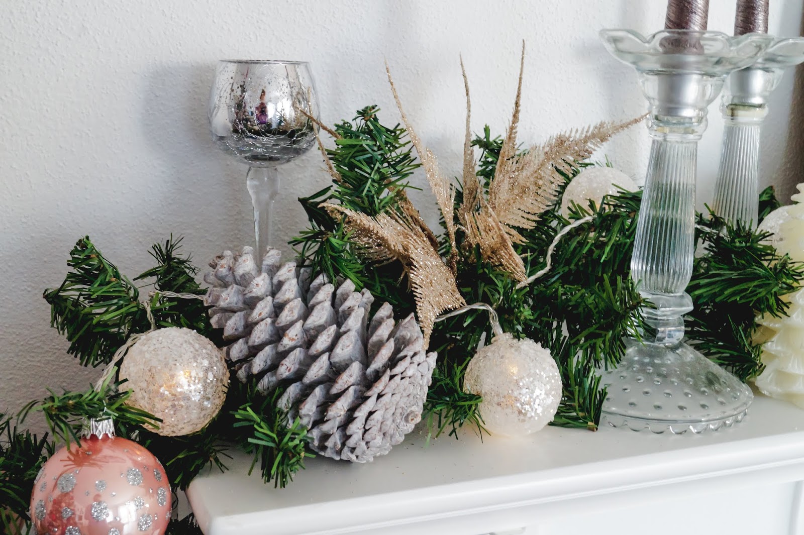 Another great addition to your entryway (if you are living in a house) is a handrail wrapped with garlands. I got mine about three weeks ago and his was probably the most work on decorating. I incorporated string lights and little ornaments and also got single red glass elements to add to the garlands.
