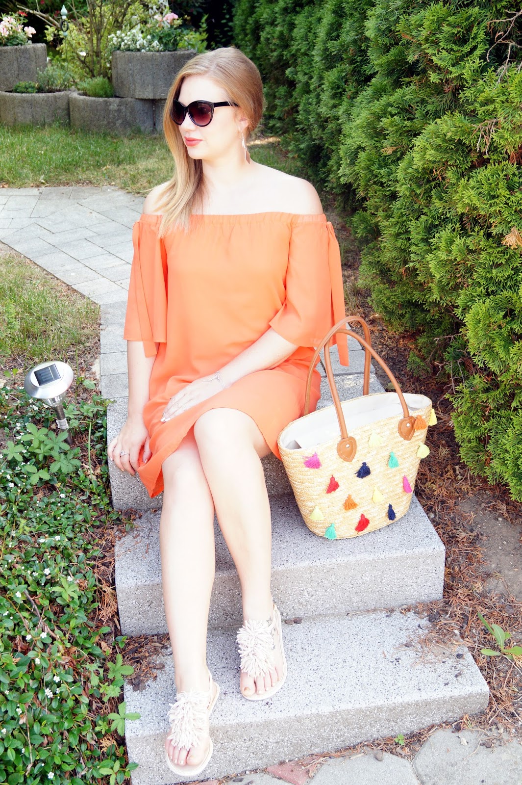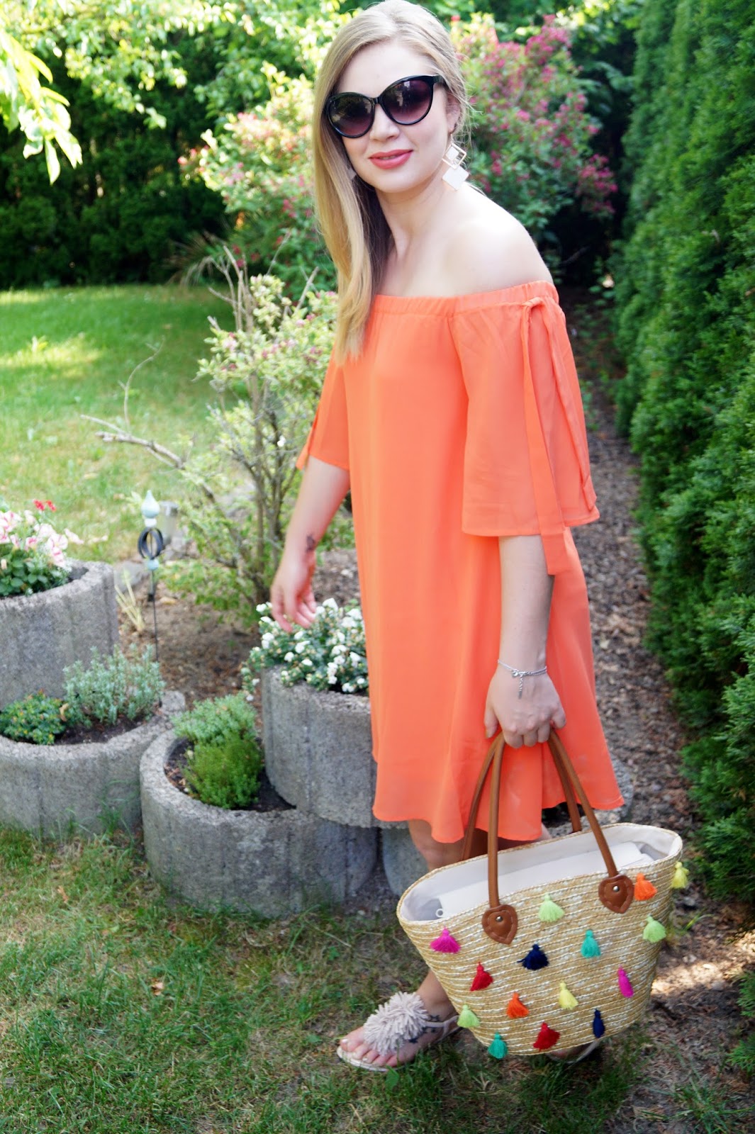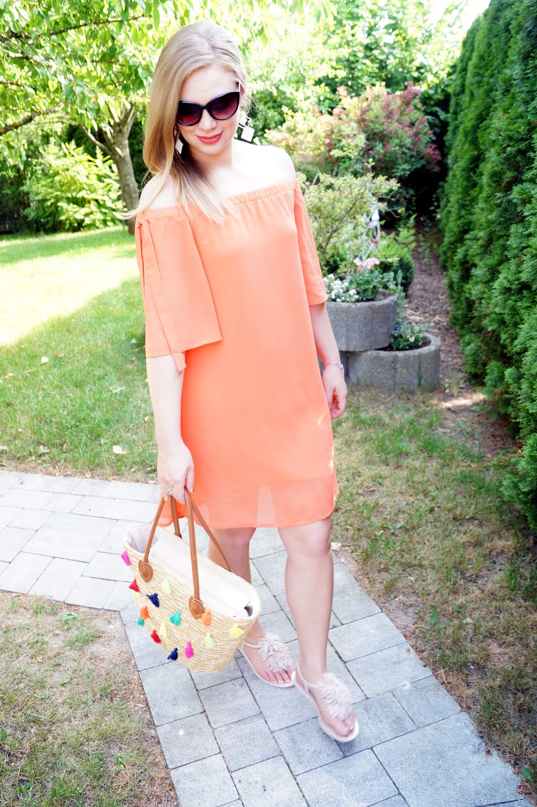 I got this super cute off shoulder dress from SheIn and this is a real hit guys. It is so flattering as it has a line shape and it is also so airy. Have you seen the little bands beside the shoulders ? You could easily make a pair of cute bows too.
