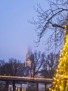 This one is probably the most known Christmas market in Regensburg. It is nestled into the backyard of the Thurn & Taxis castle and the flair is unbeatable. If offers many differnt kinds of foods and drinks. There are also some possibilities to escape the cold and warm up inside (a coffee shop a bar and a champagne parlor). It is very clean and has toilets on site. On weekends you can watch the Regensburger Christkindl on the balcony saying a poem and wishing everyone a happy advent time. They have alpakas and a whole area dedicated for small kids with some rides. The castle looks very festive at night but it gets super crowded then and parking is horrrific.