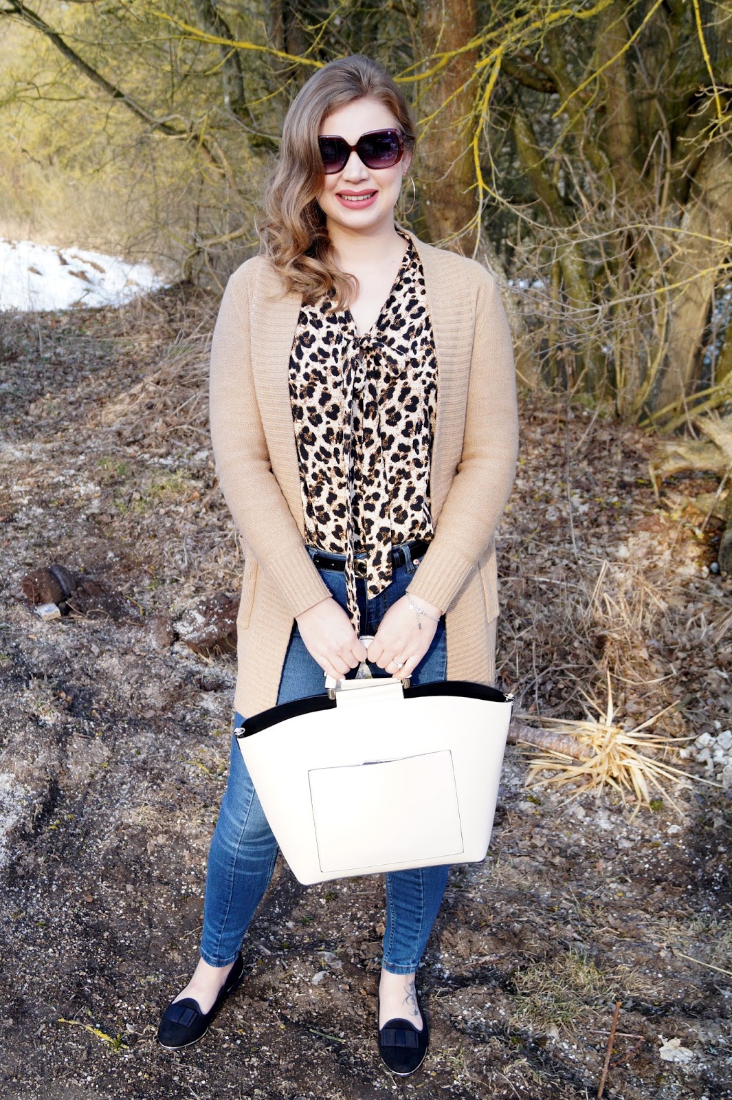 In my opinion a leopard print works year round and I would have choosen a white pant for the blouse if it was a warmer month.