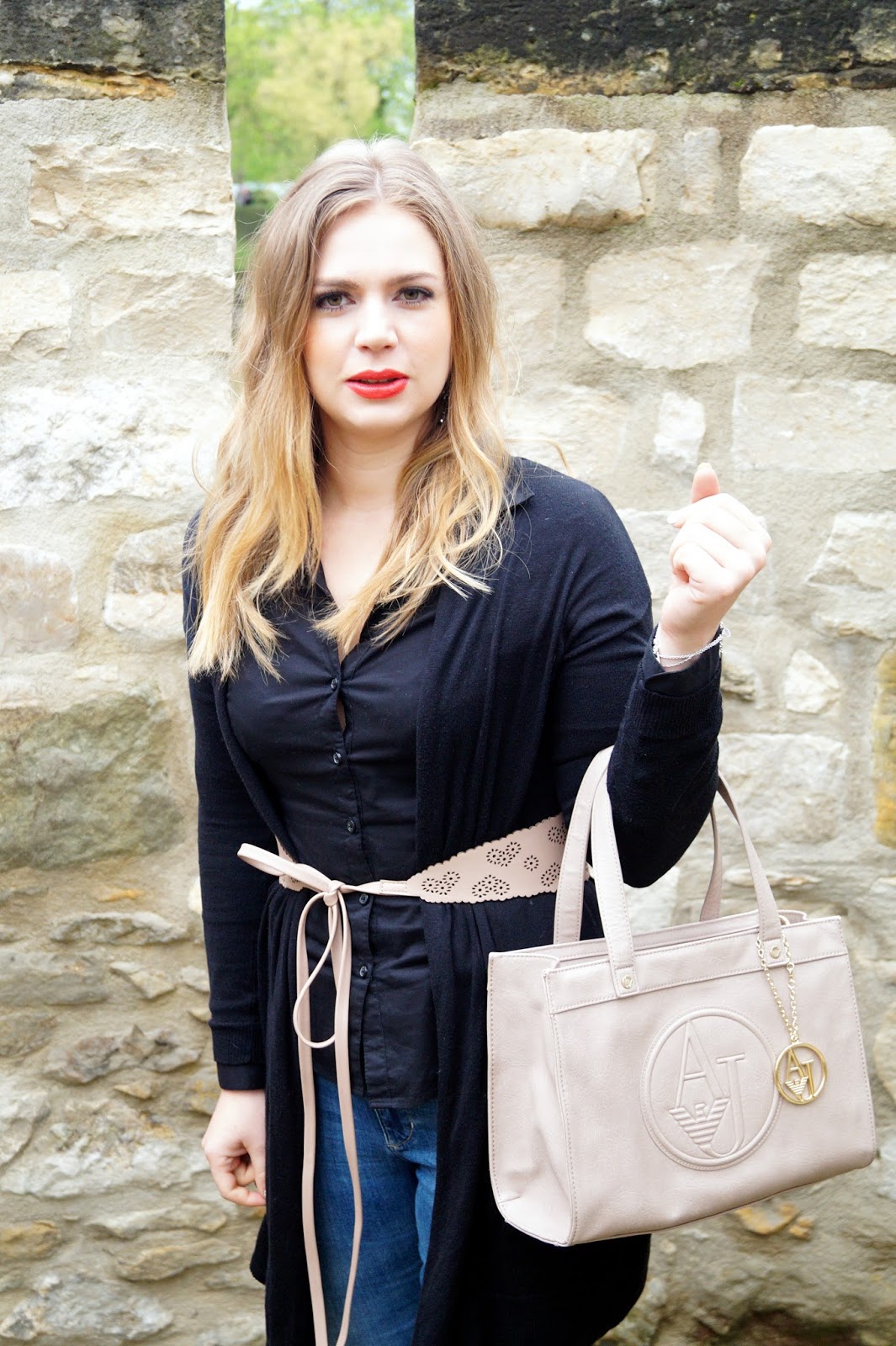 button up H&M similar here / cardigan H&M similar here and here / jeans H&M similar here and here / waist belt Annan Field old similar here, here and here / pumps very old similar here and here / bag Armani Jeans last year similar here and here