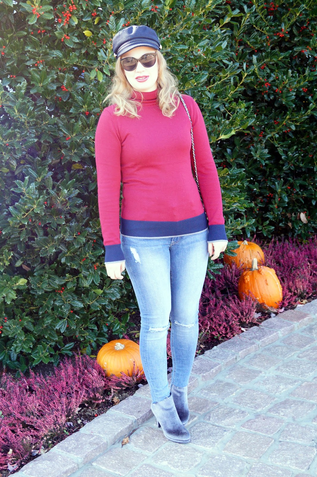 The turtleneck is in one of my favorite colors for fall, a deep plumish shade with hint of a pink undertone if that makes any sense to you. I paired it with a pair of distressed denim I recently got on sale for 25 €. The bag is from Lago di Garda but I have liked some similar ones in the widget below and the sunnies are also on sale for about 6 €.