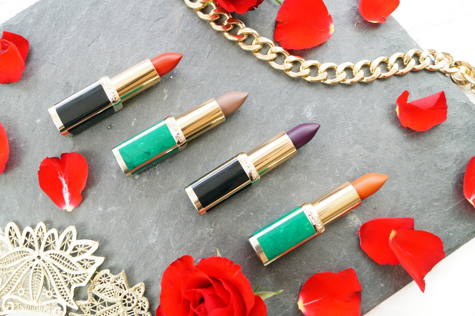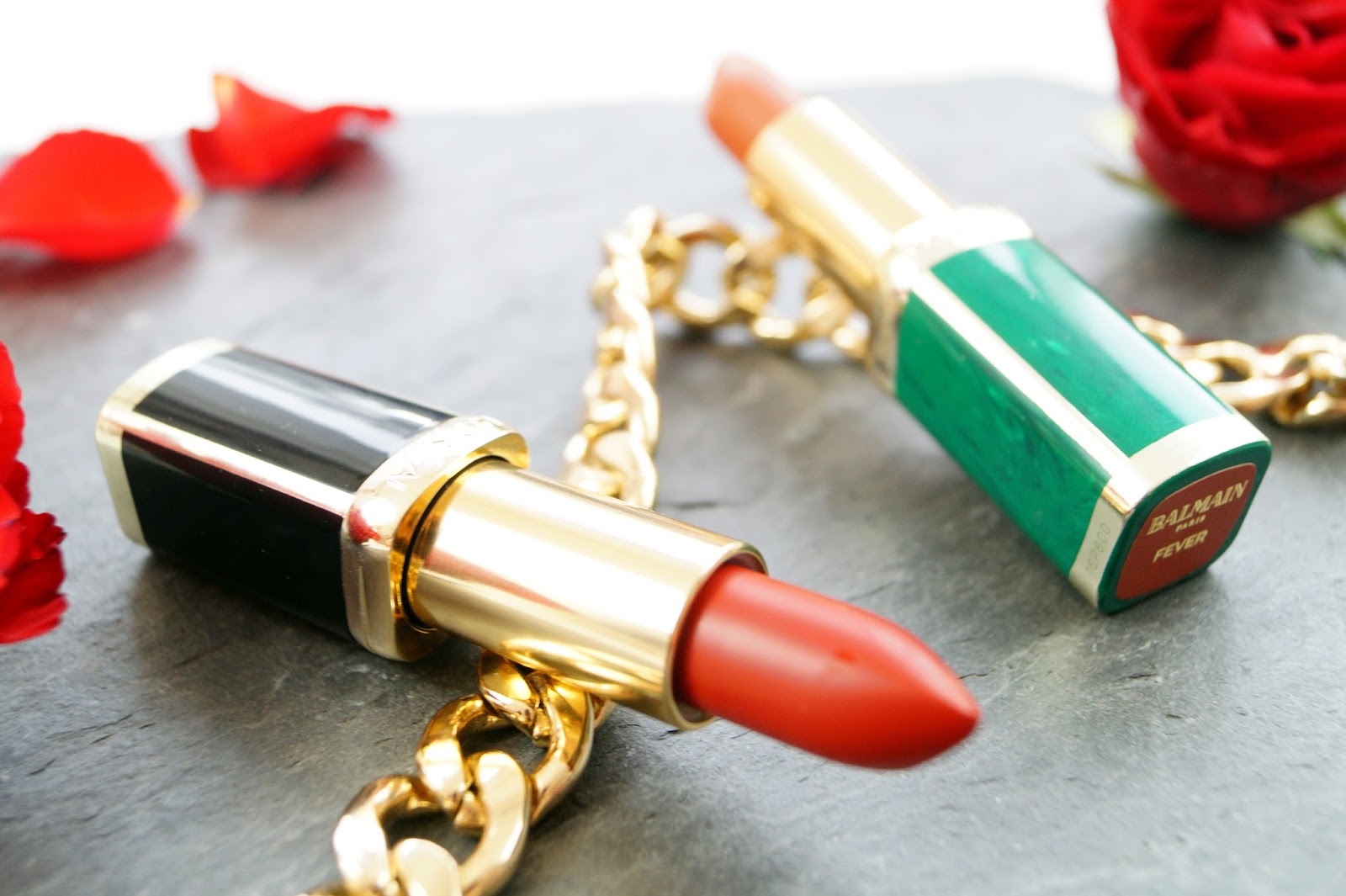 The packaging is beyond beautfiul. I think I have never had a lipstick which was this beautiful on the outside (the black ones are shiny with the gold details and the green ones – and as far as I have seen – have a marble pattern. The lipsticks cost about 12 € and I think that is pretty affordable cause in the end it still is a collaboration with a high class designer.
