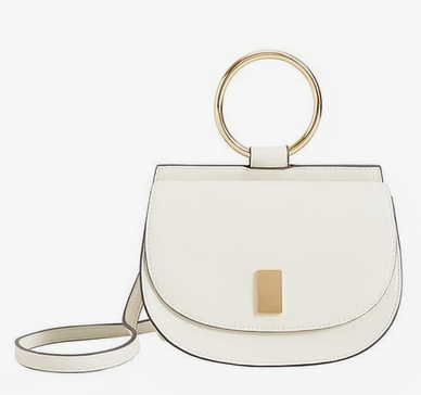 I have found this super cut crossbody bag from Mango with this round metal handle. It is called the Zina bag and available in black and this creme shade and it looks pretty familiar to a high-end designer bag.