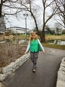 – a green teddy vest – to add some color and warmth on this dreary Spring day