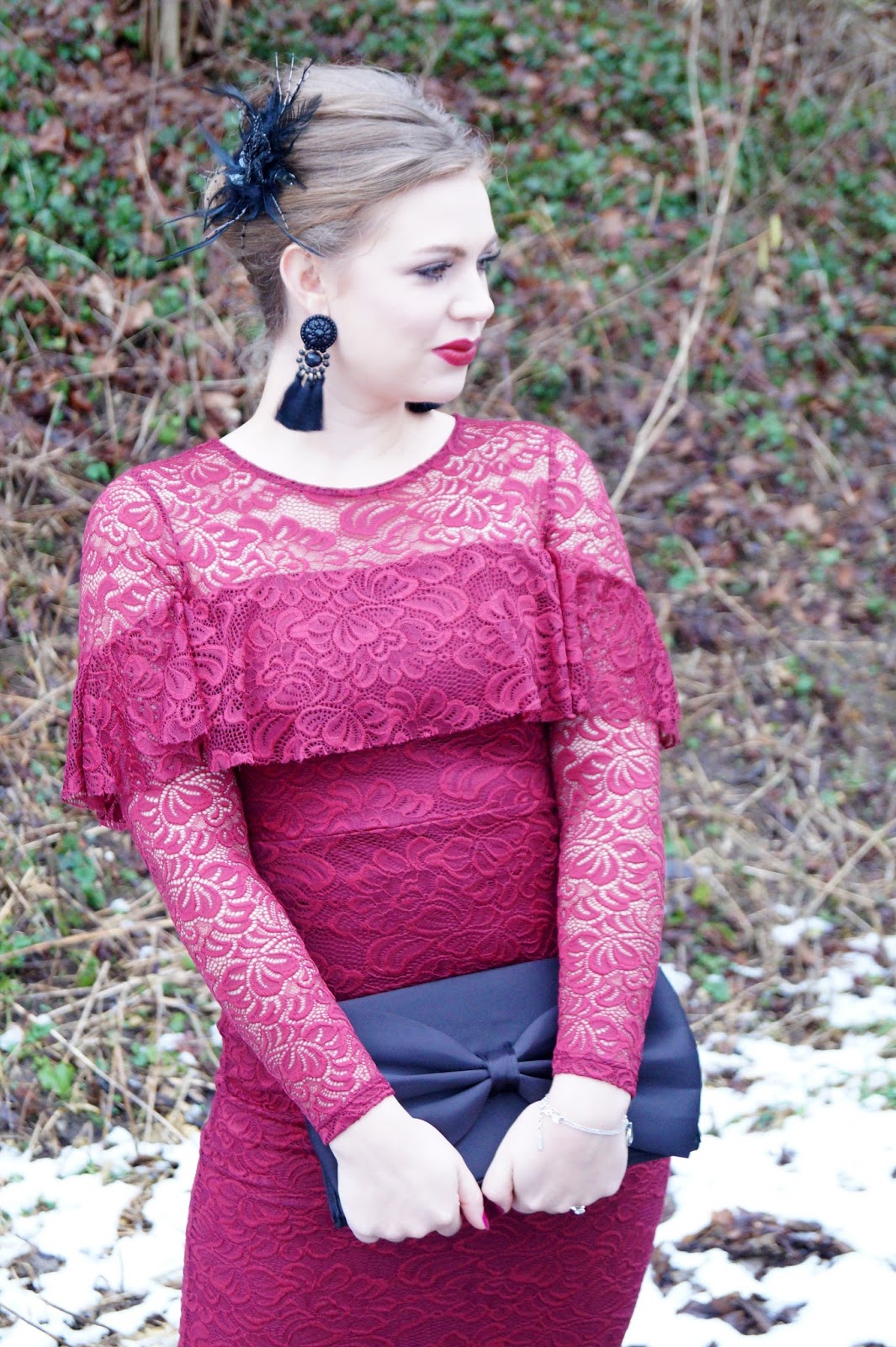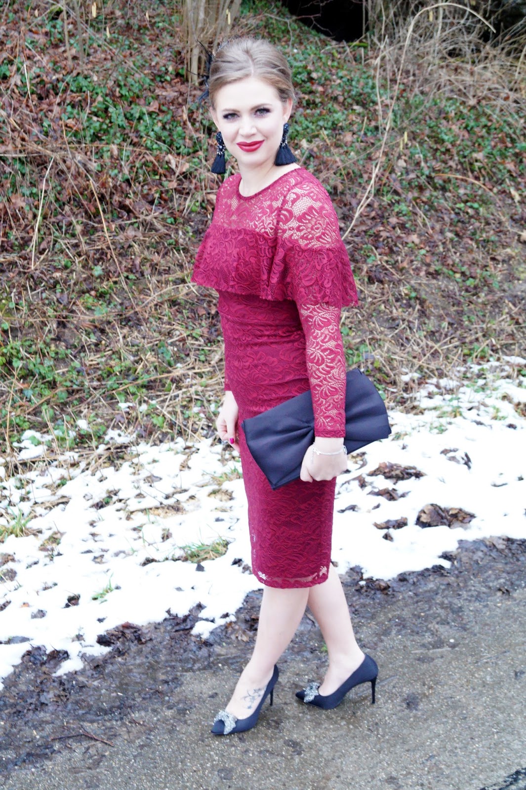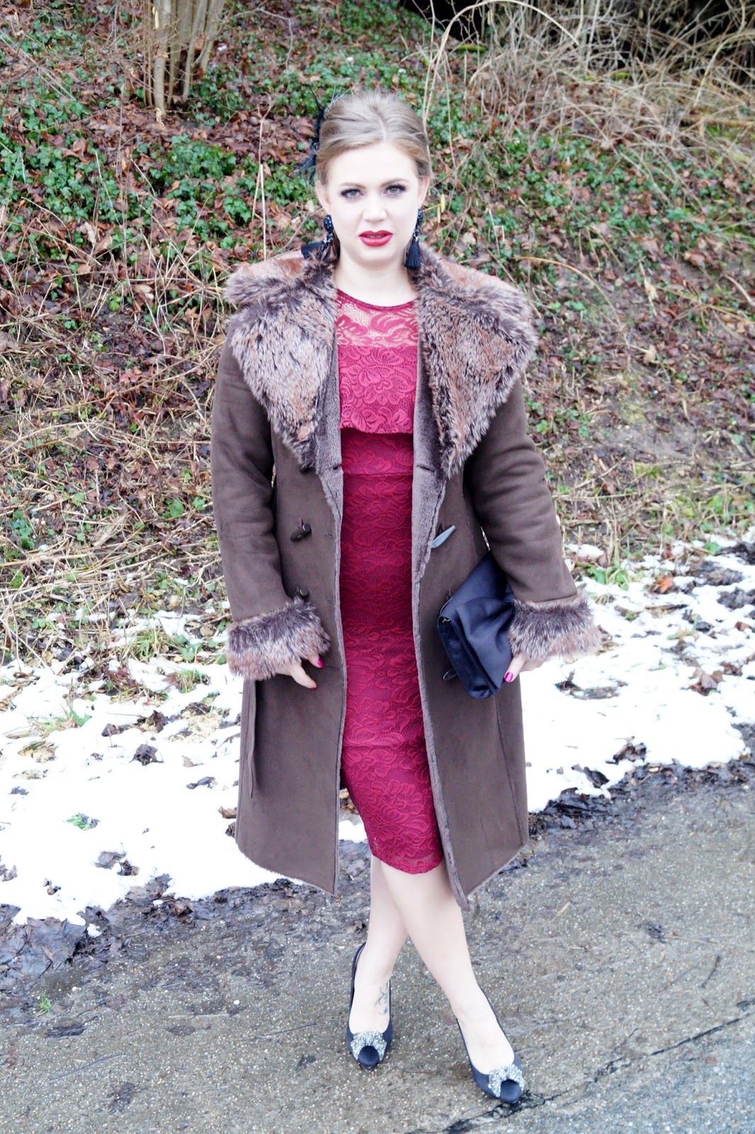 For my look I went with a burgundy midi dress from Asos I got before Christmas. It is under 50 Euro and just beautiful. The color was perfect for a birthday party in winter (Florian´s tie was matching the color of my dress perfectly).