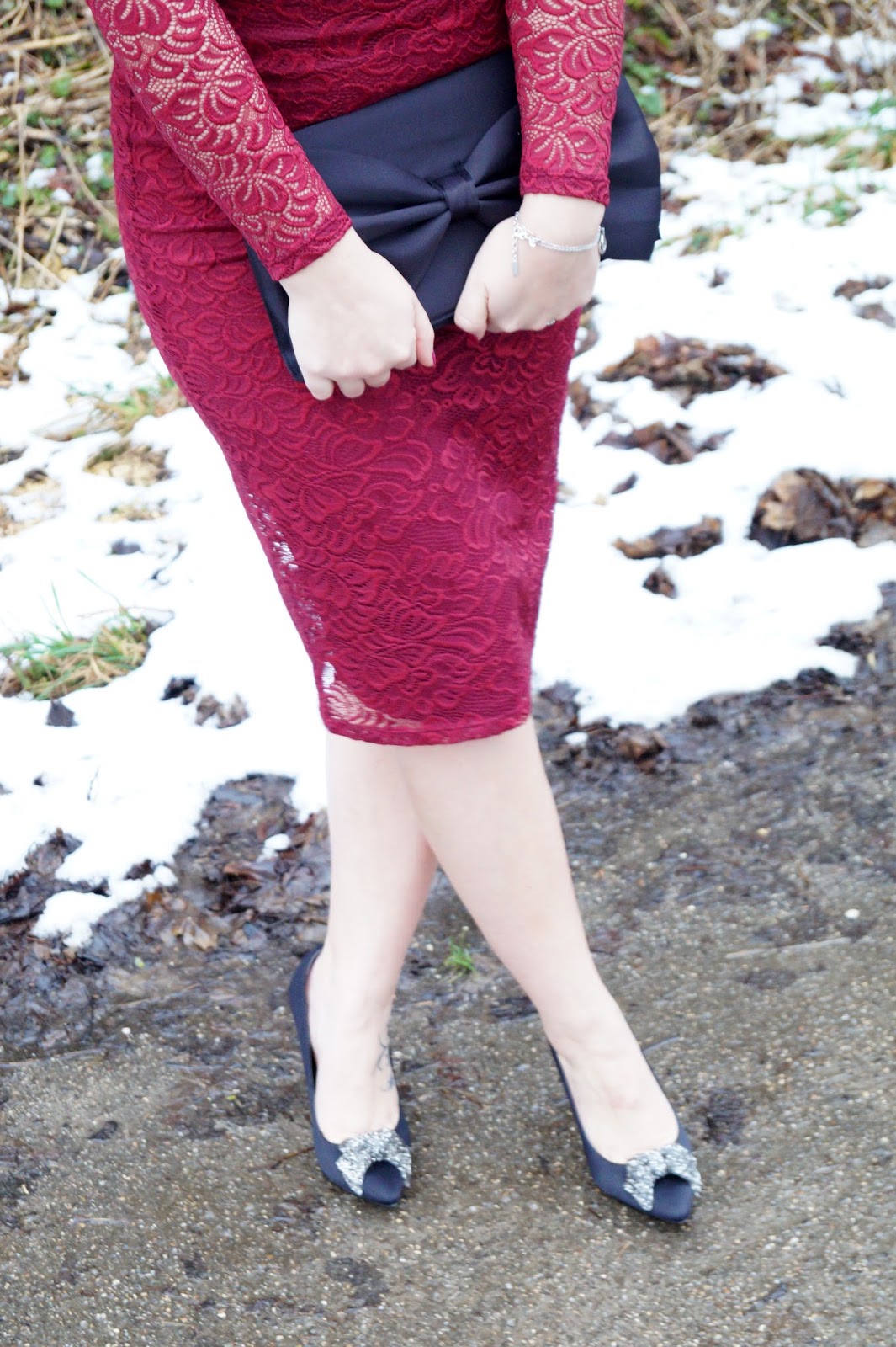 The whole dress was made of a lace fabric and the ruffles on top of the dress where such a highlight. I especially liked the lenght. But now on to the heels. I have found them on Asos before Christmas and they where like 35 Euro. I ordered them in my usual size (37) but they where too small so I sent them back and also ordered a size bigger and by this time they where only about 18 Euro. So sometimes there is a meaning behind to small or big clothing 😉