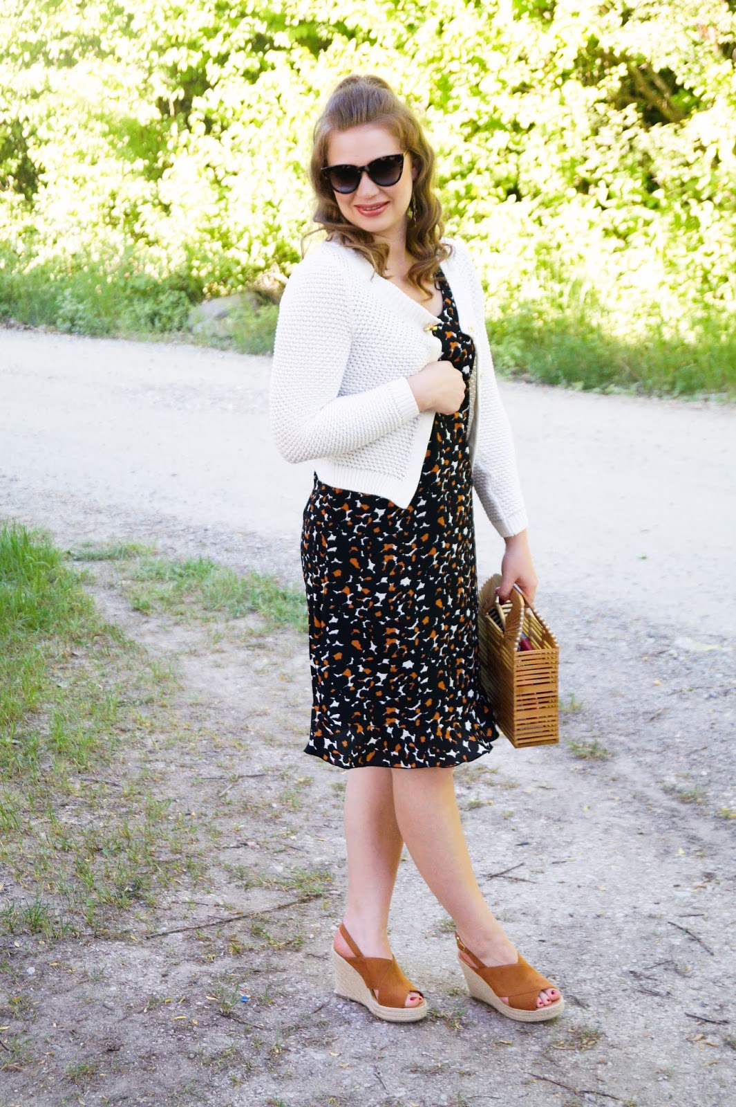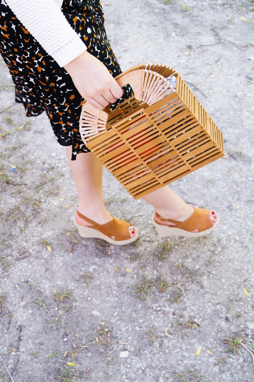 I have paired the printed dress with my favorite pair of tan wedges and my beloved bamboo bag. I had worn this look to a BBQ and everybody wanted to see my bag. I still love it so much. It is pure art to me.