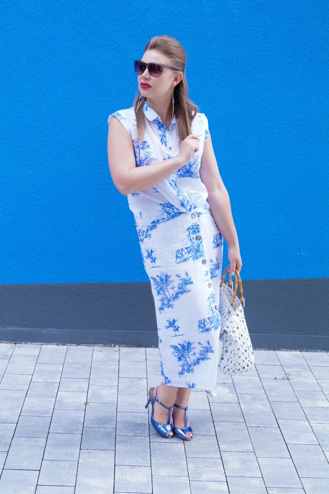 I paired it with a pair of metallic blue high heels I have been wearing for years now. Got the same also in pink and love the style. Reminds me totally of a dancing heel from Dirty Dancing. The handbag is one of my Summer staples. A laser cut bag in white screams Summer like a straw bag so if you got those two you don´t need to worry about anything else cause you are set for the season.