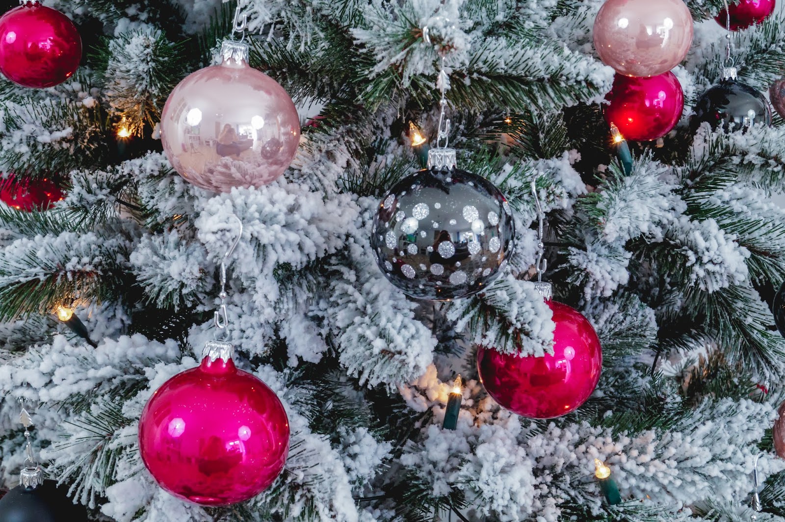 The pink, blush and black ornaments are our classic shaped ornaments on the tree. I got them in a medium and large size to mix and match as I like. I like different size ornaments a lot, also matte and glossy are great to get add texture and deepth to your tree.