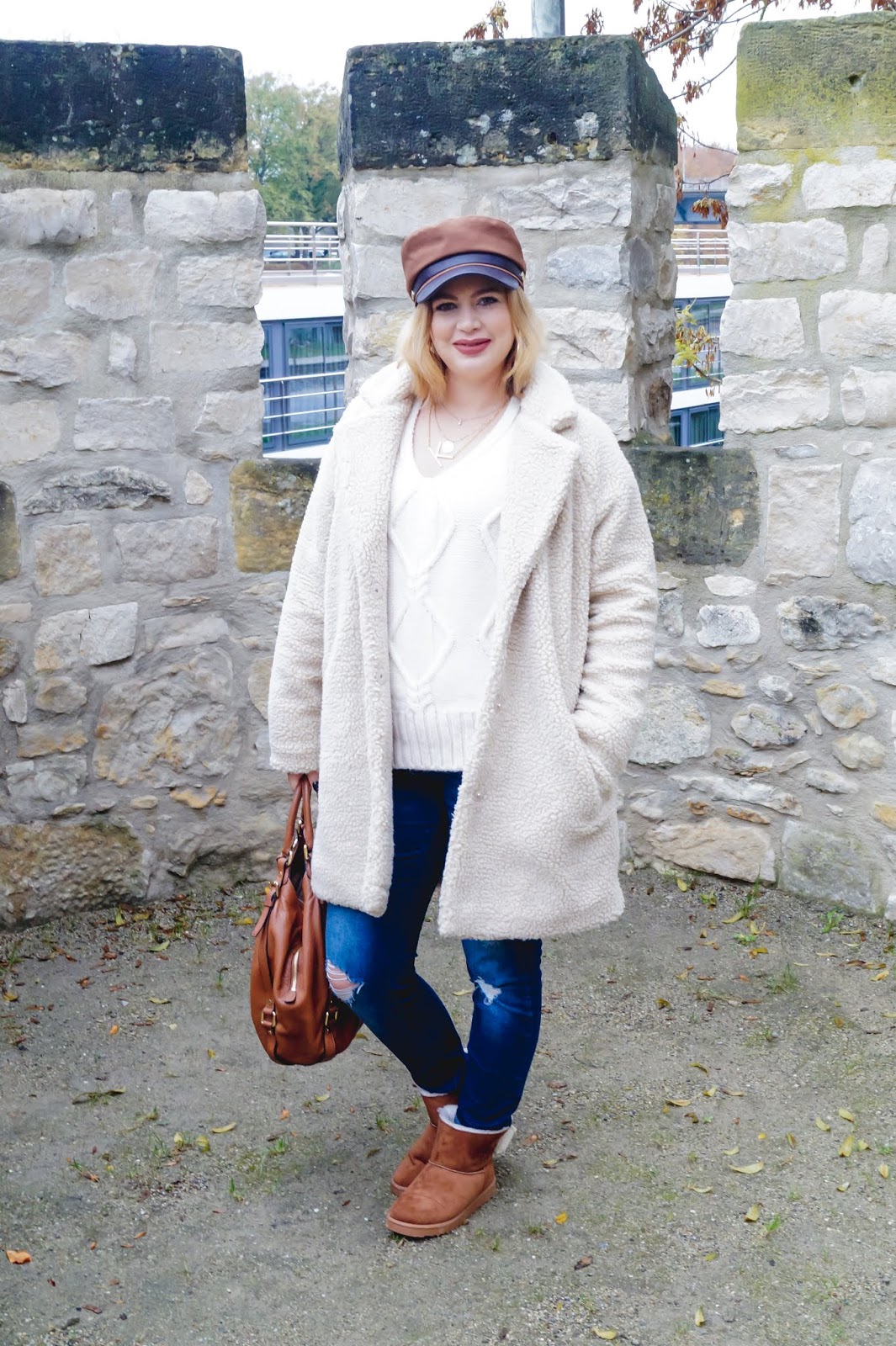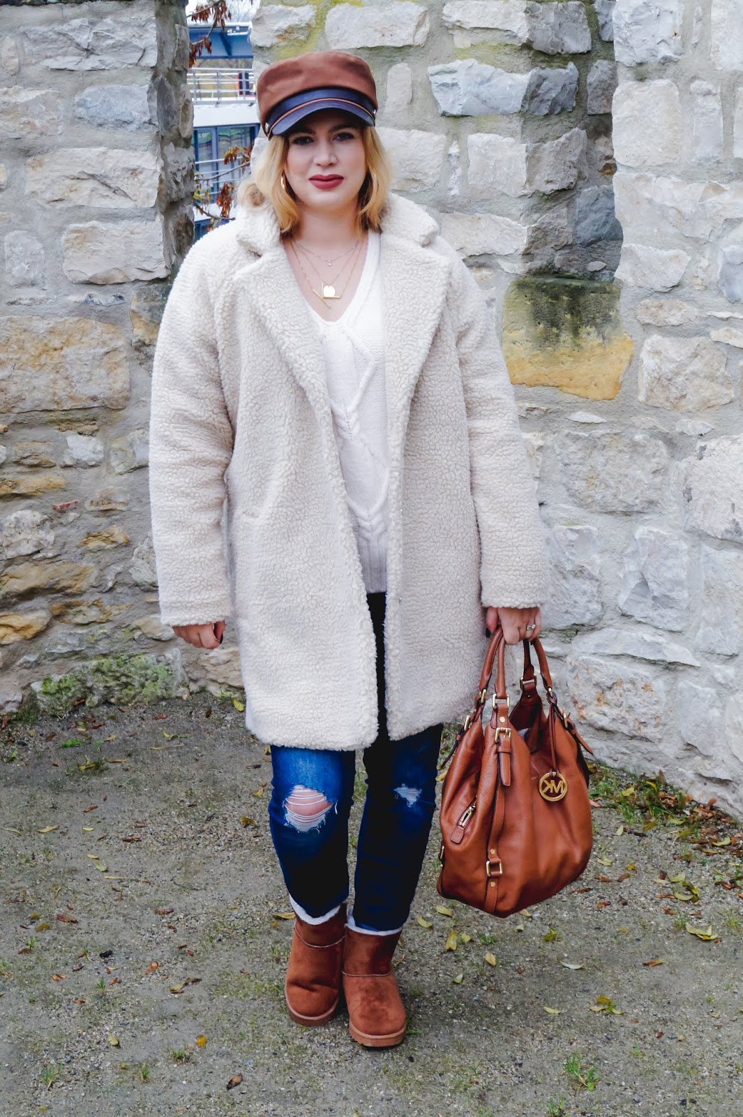 what the faux fur coat (see last years post here) has been last year to the fashion community, is the teddy coat now. So many different brands and retailer carry a bunch of teddy coats in so many beauiful colors. I was eyeing with a burgundy one but went with the classic color. A beige teddy coat just was a lot more versatile to me.
