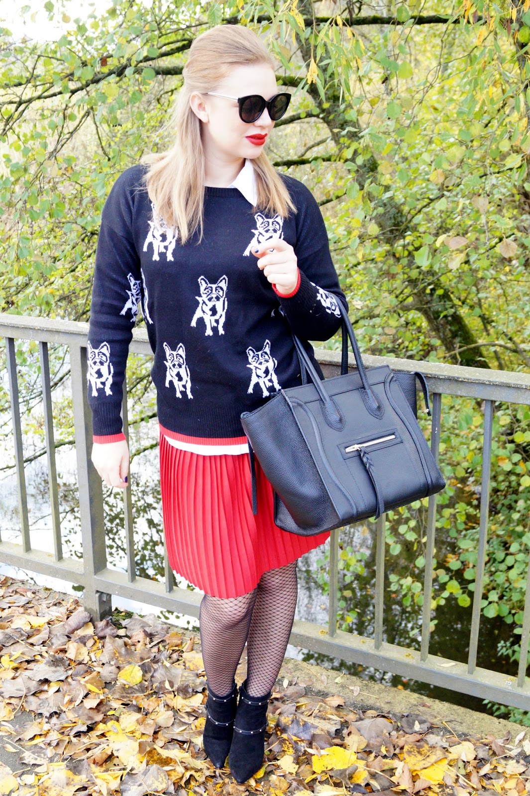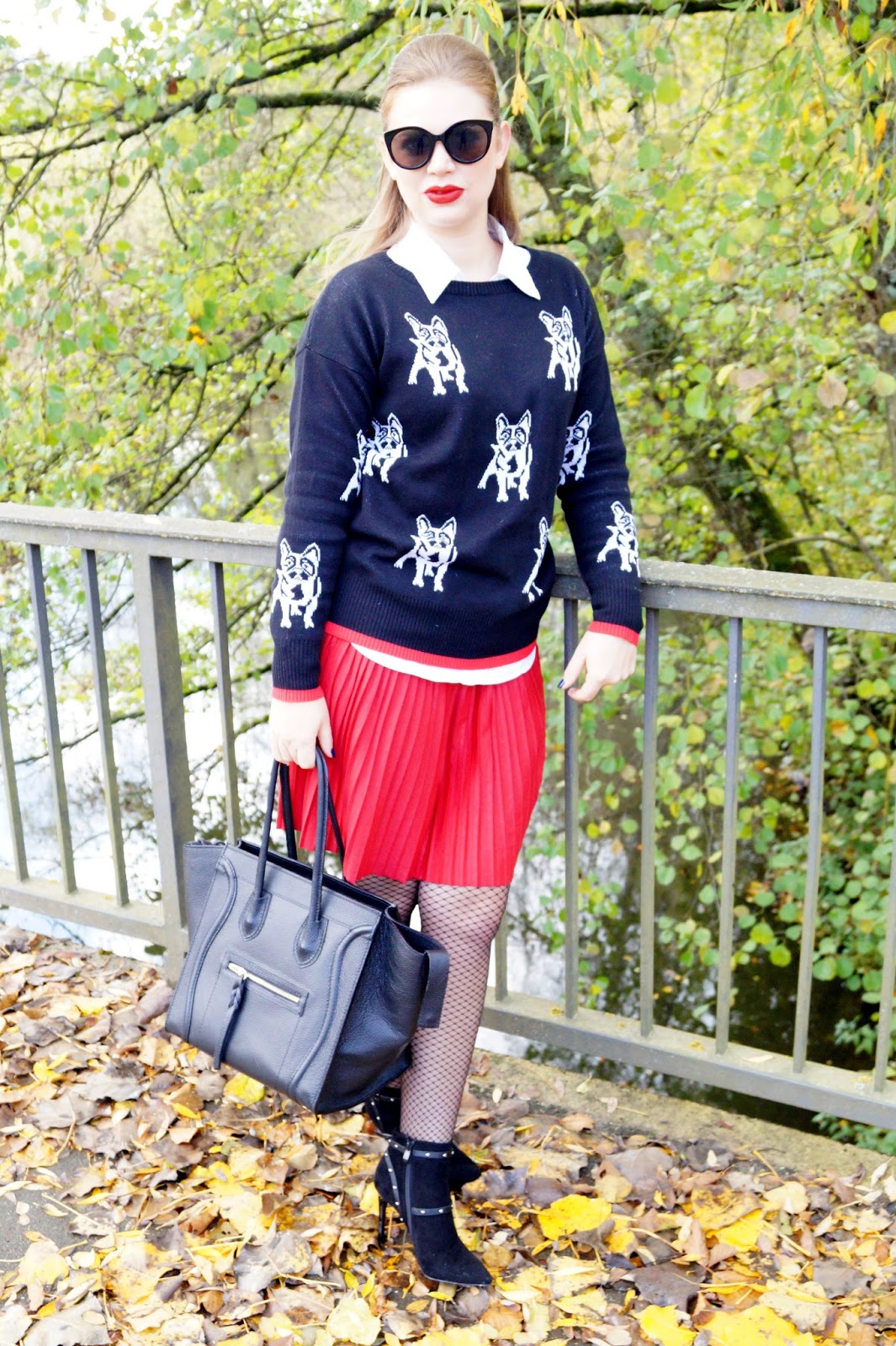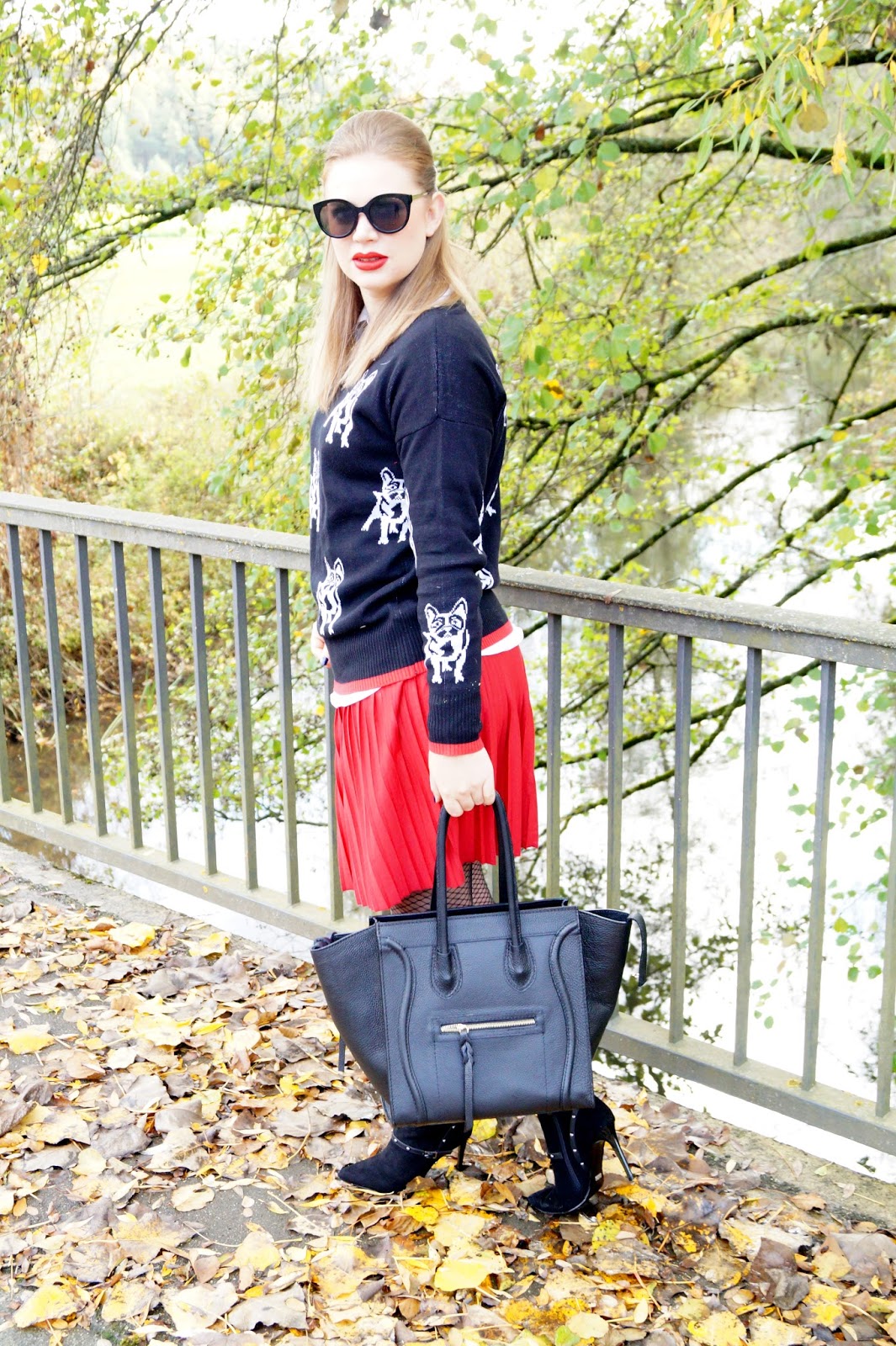 I paired the pullover with a white button down I wore under it and a red pleated mini skirt. I am also owning pleated skirts in so many other colors and lenghts. They are a real closet staple to me and I just love wearing them.