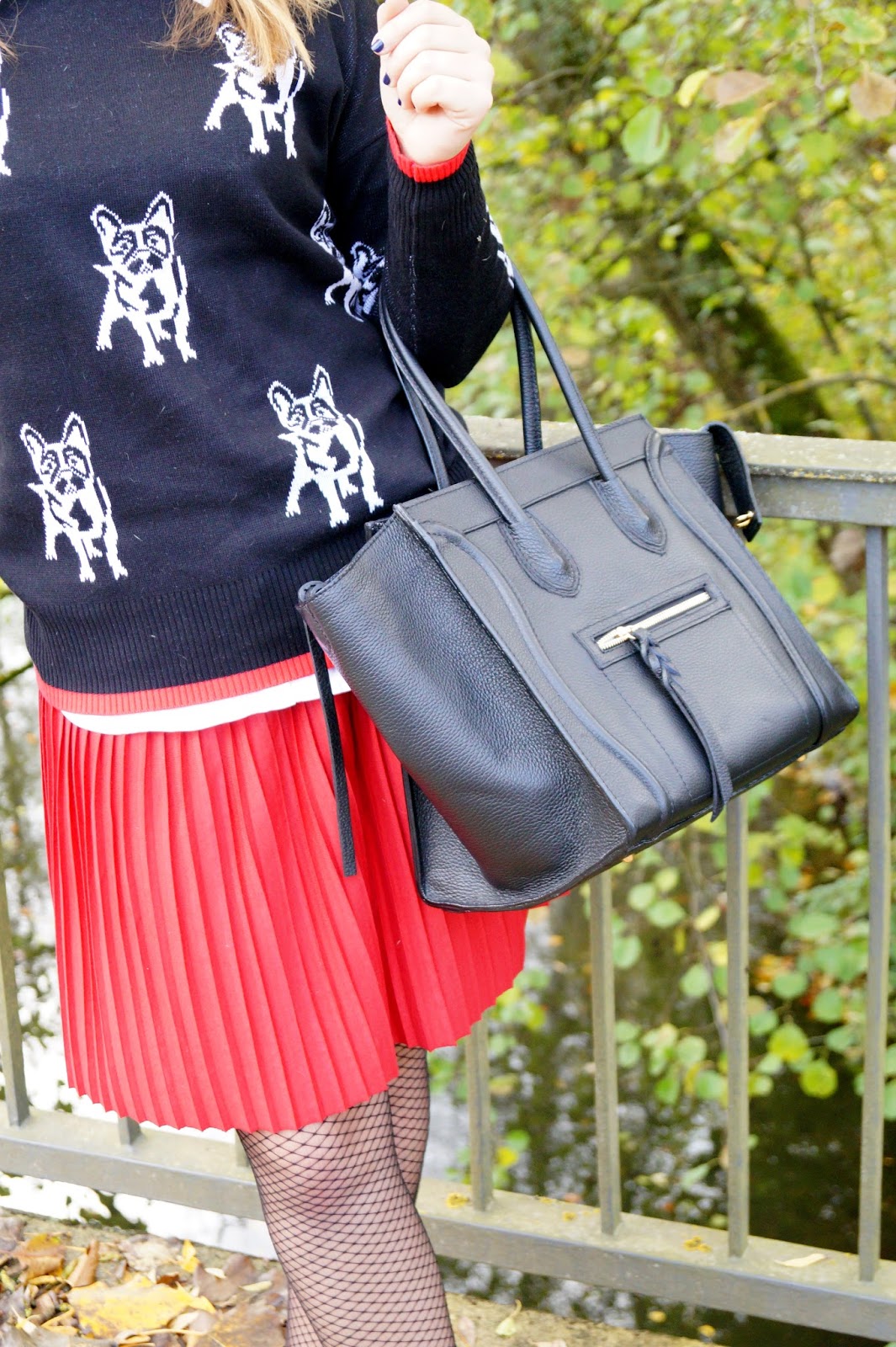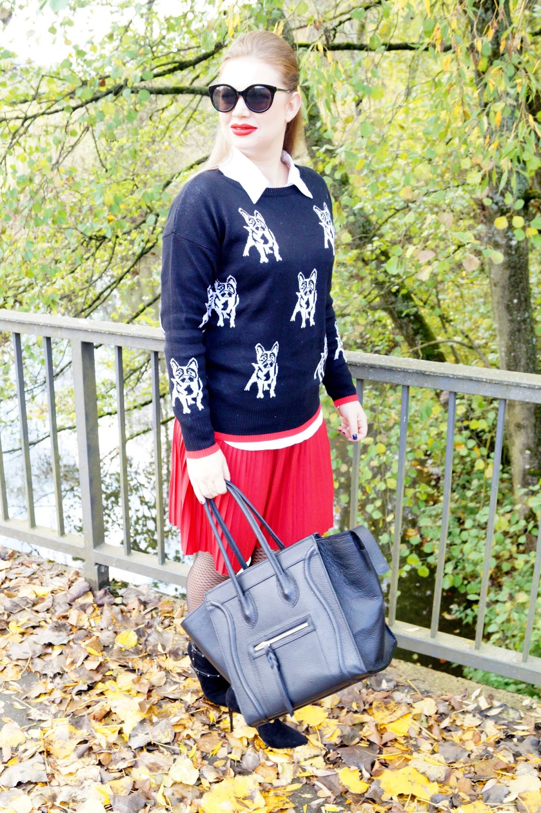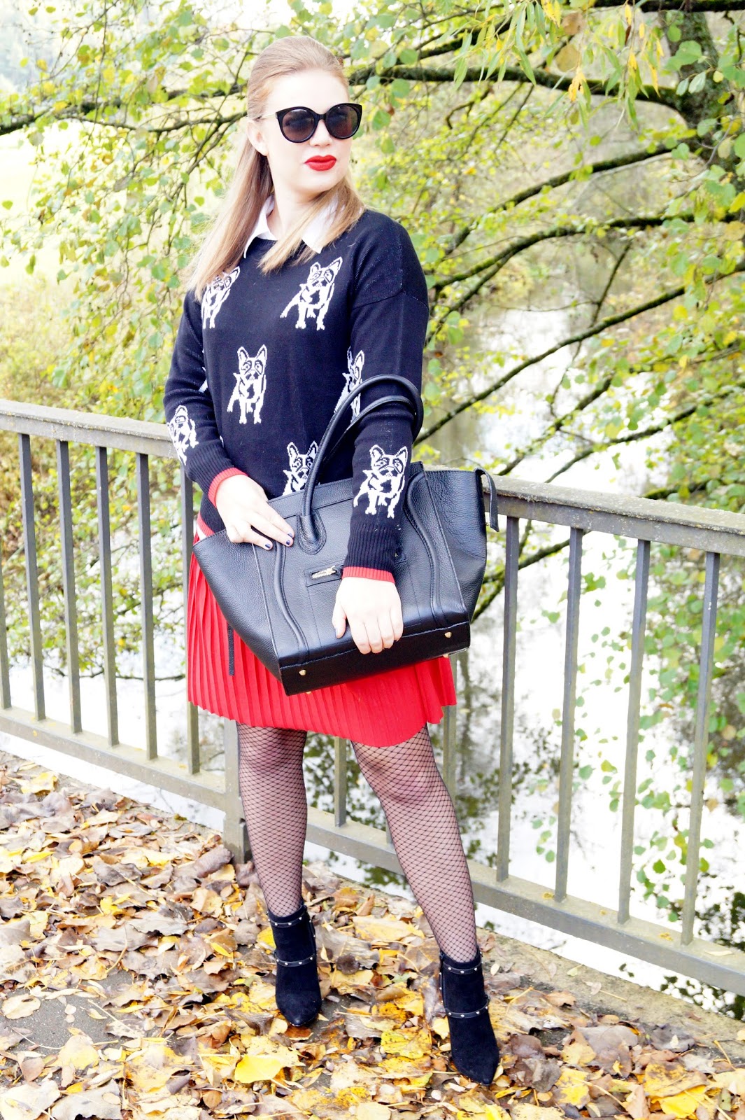 I paired the pullover with a white button down I wore under it and a red pleated mini skirt. I am also owning pleated skirts in so many other colors and lenghts. They are a real closet staple to me and I just love wearing them.
