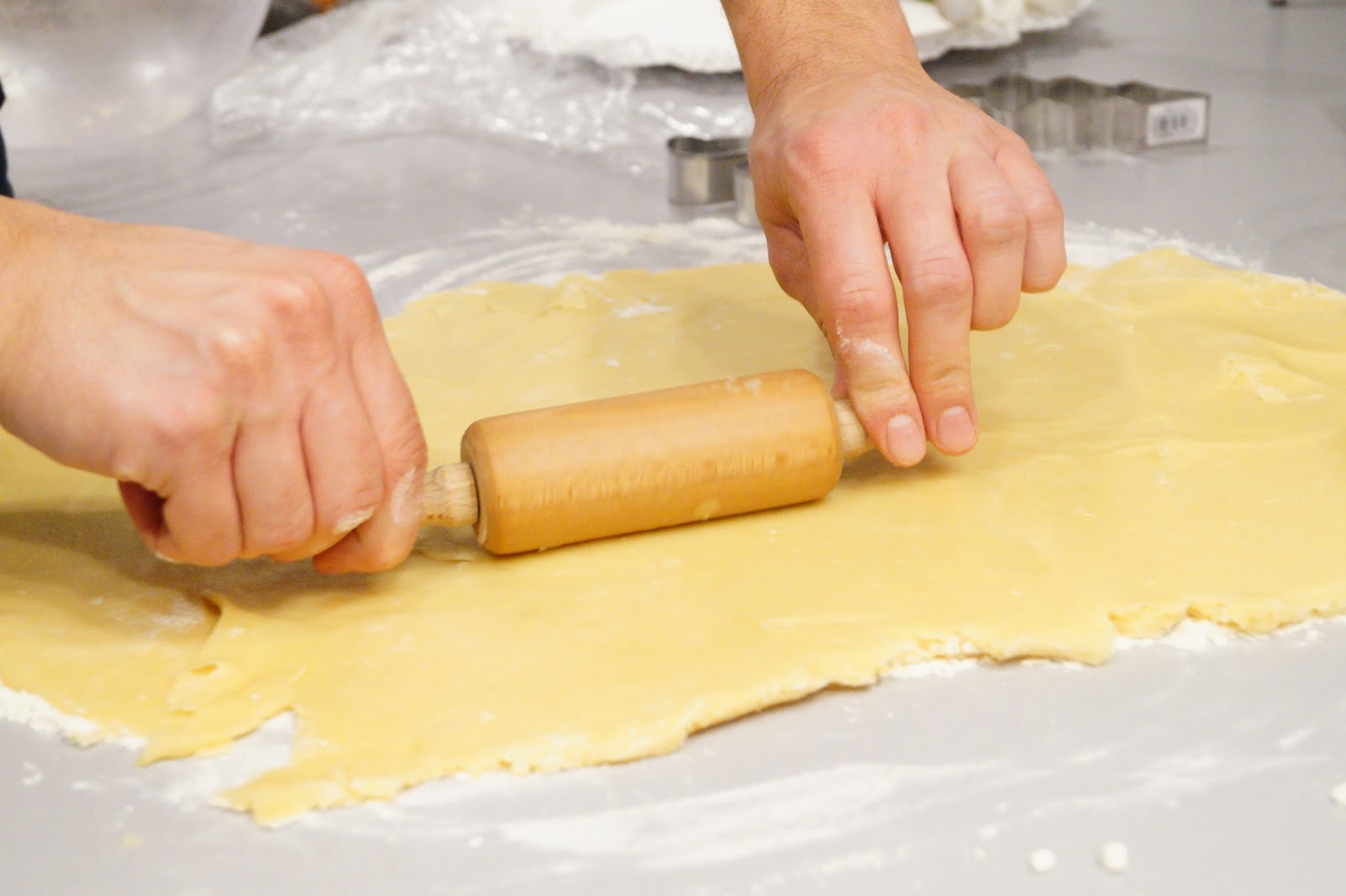 (Sorry for the black shirt but I had to split the baking into two evenings cause I forgot to let the dough cool down for a few hours and then it was to late. And on the other hand my pullover got some stains from making the dough so I had to wash it.)