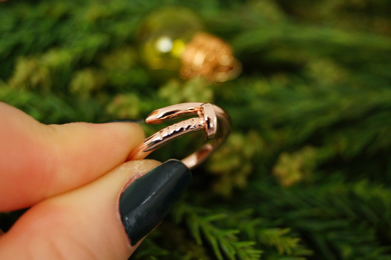 They have five different categories. Rings, bracelets, necklaces, earrings and sunglasses. I decided to go with those two beautiful maching pieces in a rosegold hue. The ring called The Nail and also the bracelet The Nail. They are also available in silver and gold but I am more on the rosé side. Whether it is wine or jewelry.