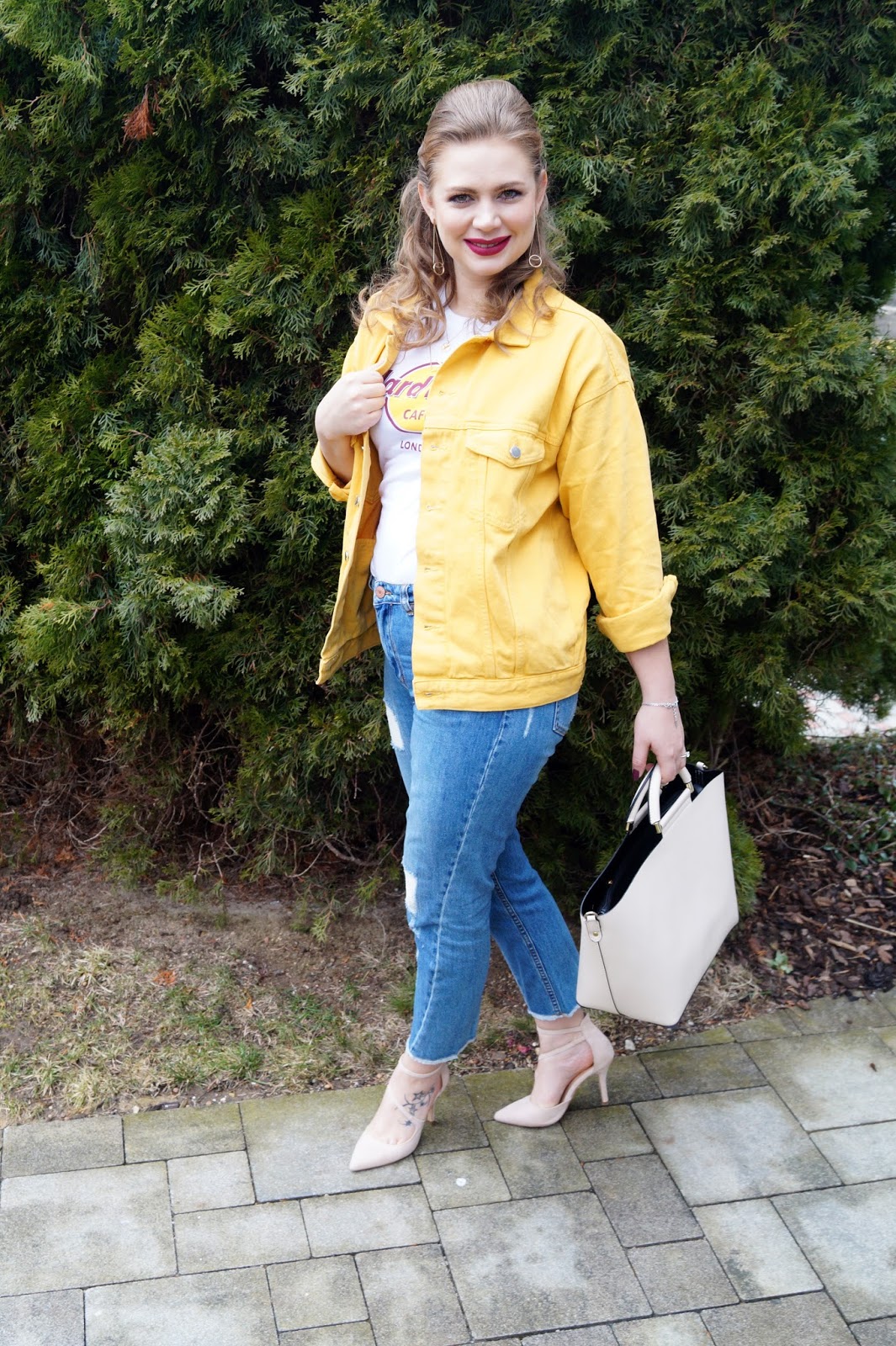 since I am a romantic girl in and out which you can also see in my ways of dressing I don´t go cool very often but this denim jacket was so beautfiul I had to have it. The color is amazing. I personally love that mustardy yellow shade no matter the season but yellow for Spring is so fresh and sets all feelings for Summer.