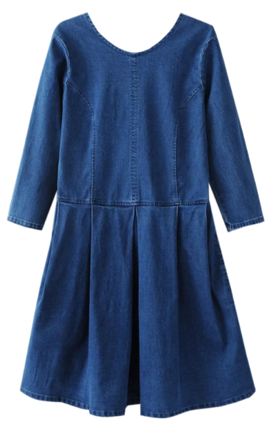 A classic silhouette on a denim dress would be a buttoned denim dress like the blue denim long sleeve shirt dress (4) and the long sleeve tie belt denim dress (3). It is like a denim shirt you can get everywhere but extended to a dress.