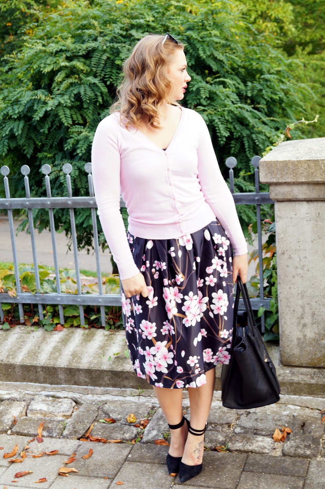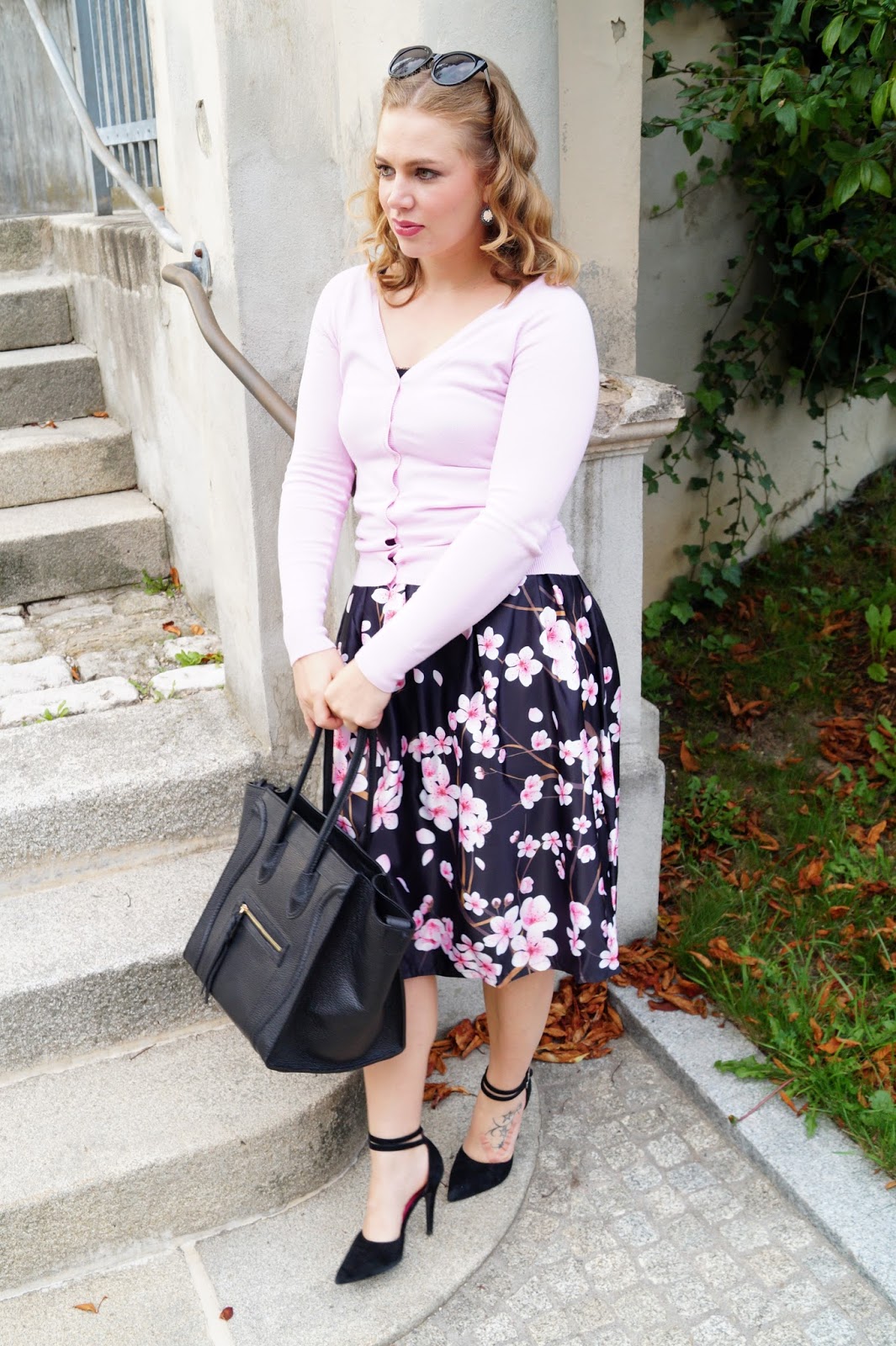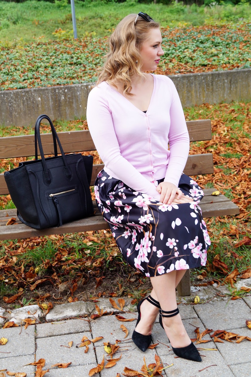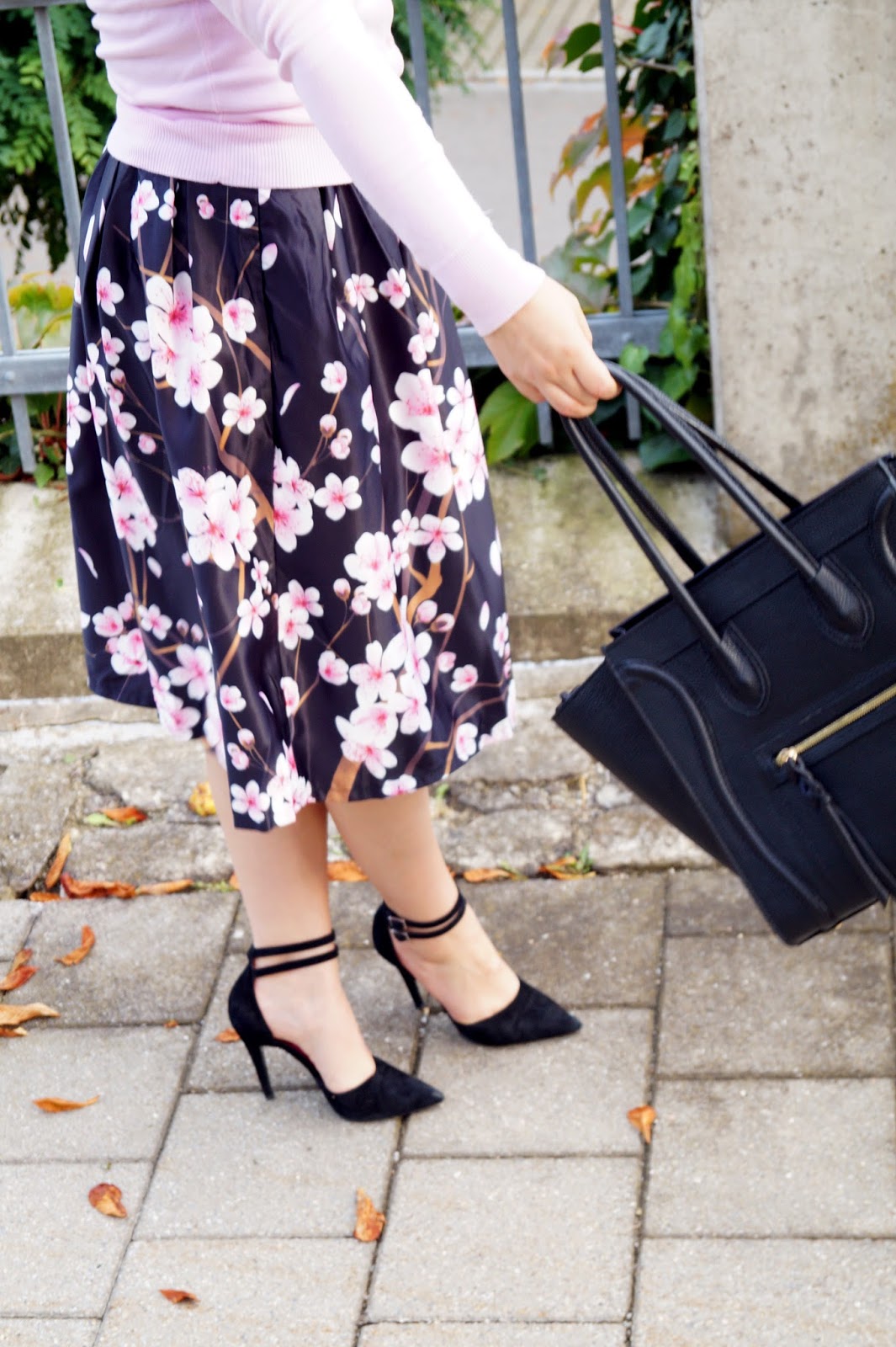 Of course I had to style it with a matching outfit. I got the skirt from amazon fashion and I love it. I always would prefer an a-line skirt over any other style. They have four different prints for this style but since I saw flowers and pink I was totally sold. Best part about it – it is only 13 €. The one downside is that the skirt has no lining but I am fine with that since the material isn´t too thin and black isn´t seethrough at all.