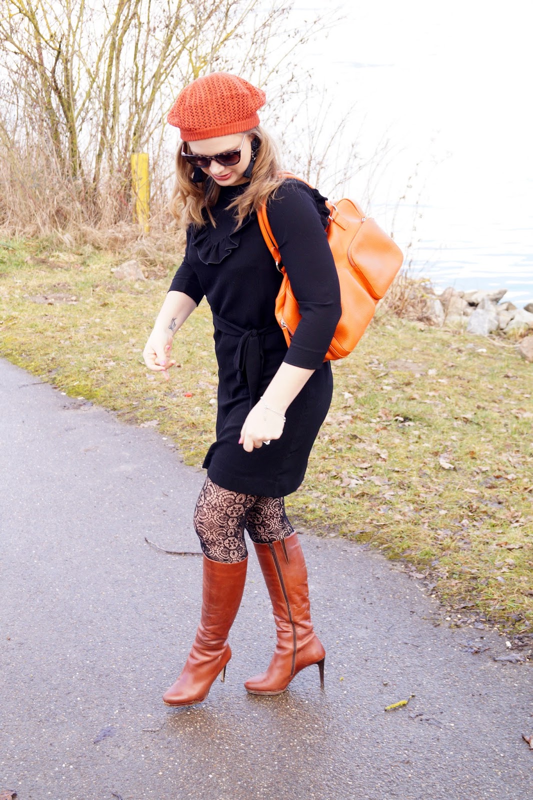 Anyways I had worn this look last Friday and I totally loved it. I always loved the combination of orange/later cognac brown and black. This pairs so well and looks really good together.