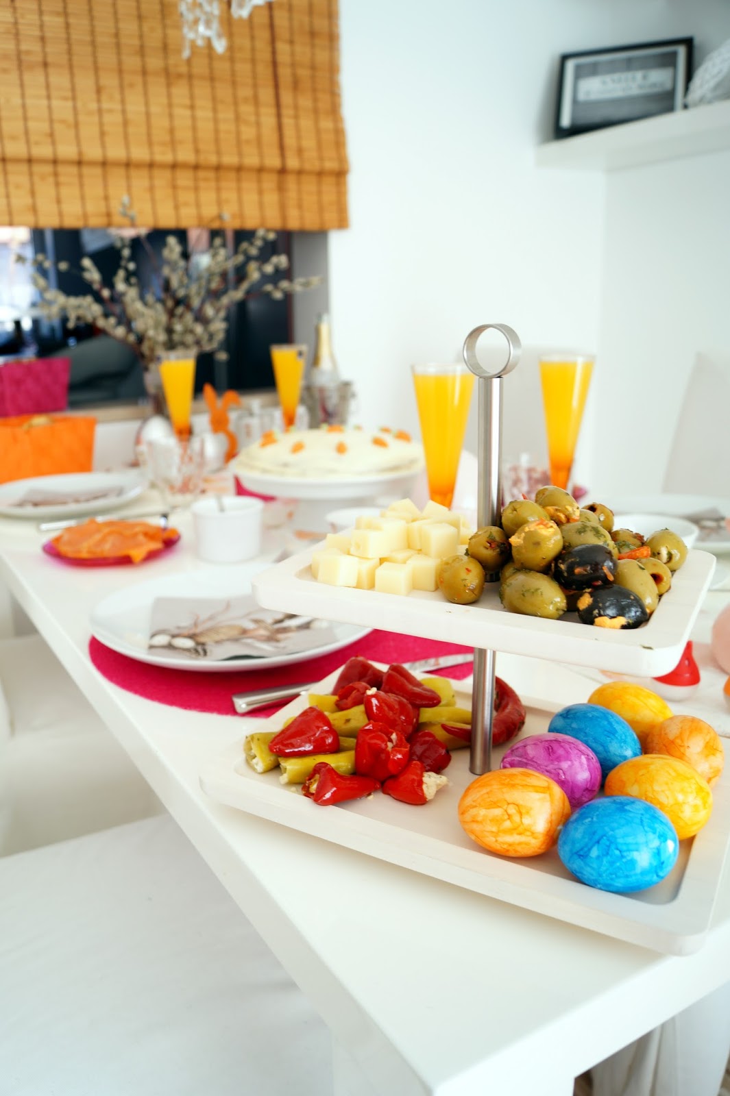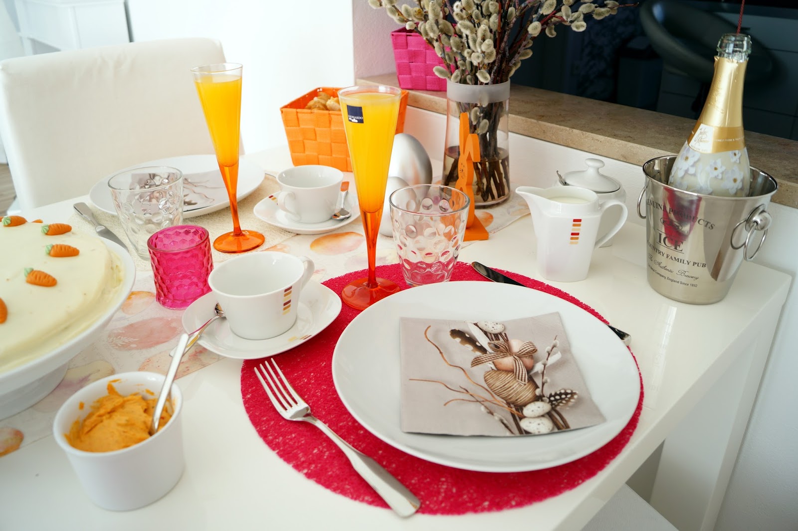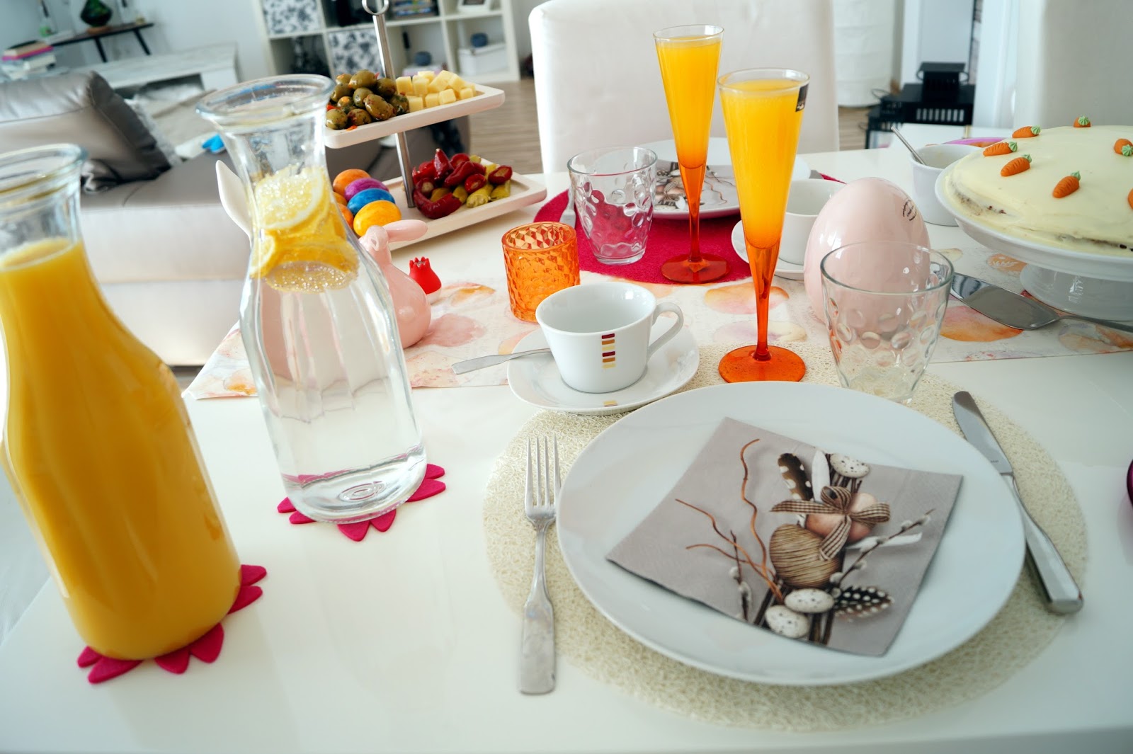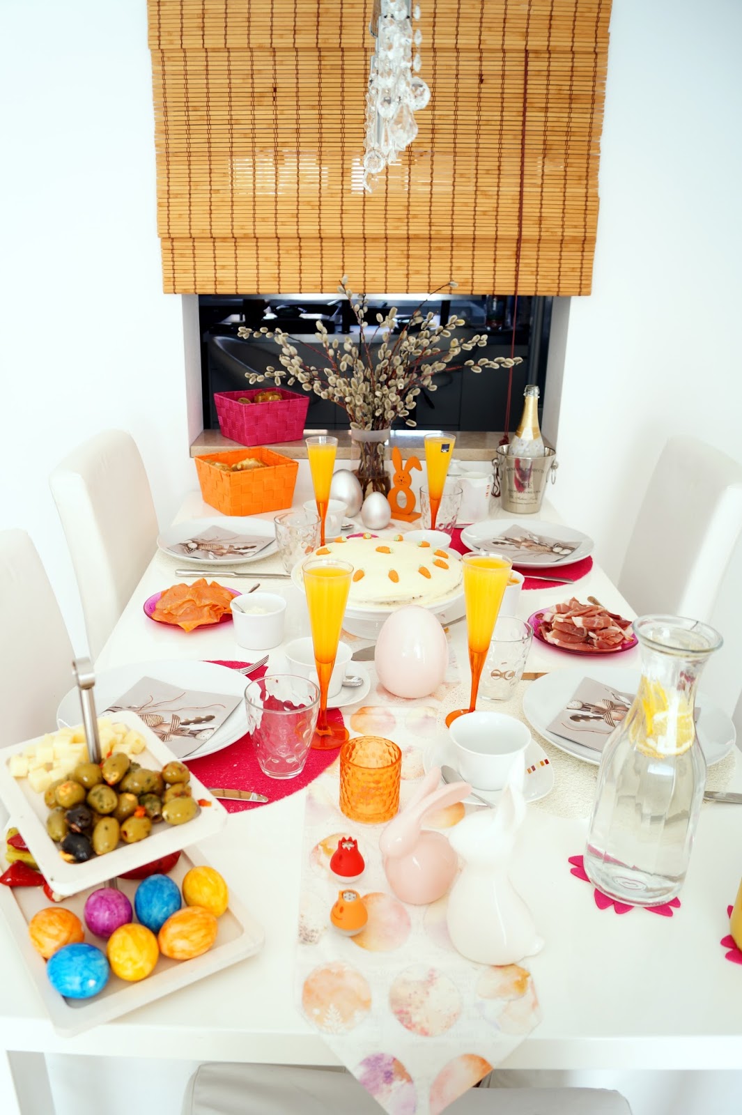 Ostertisch ausgedacht habe. Ich hab mich für Pink und Orange entschieden