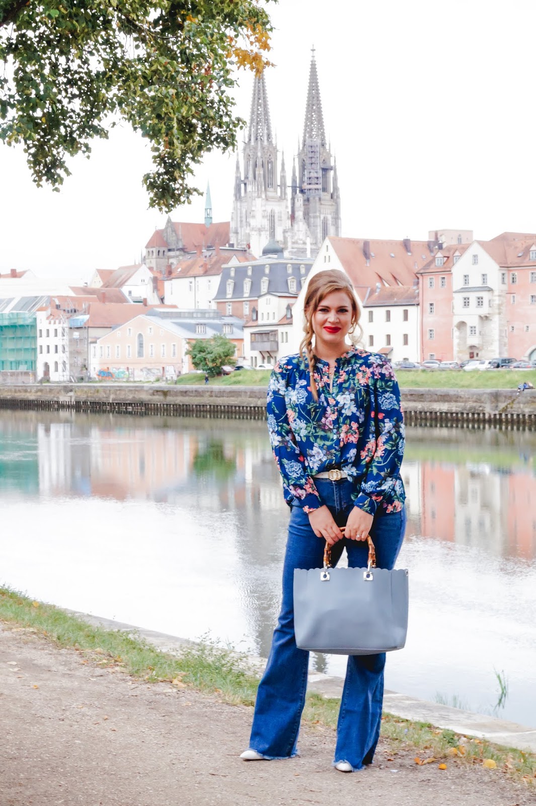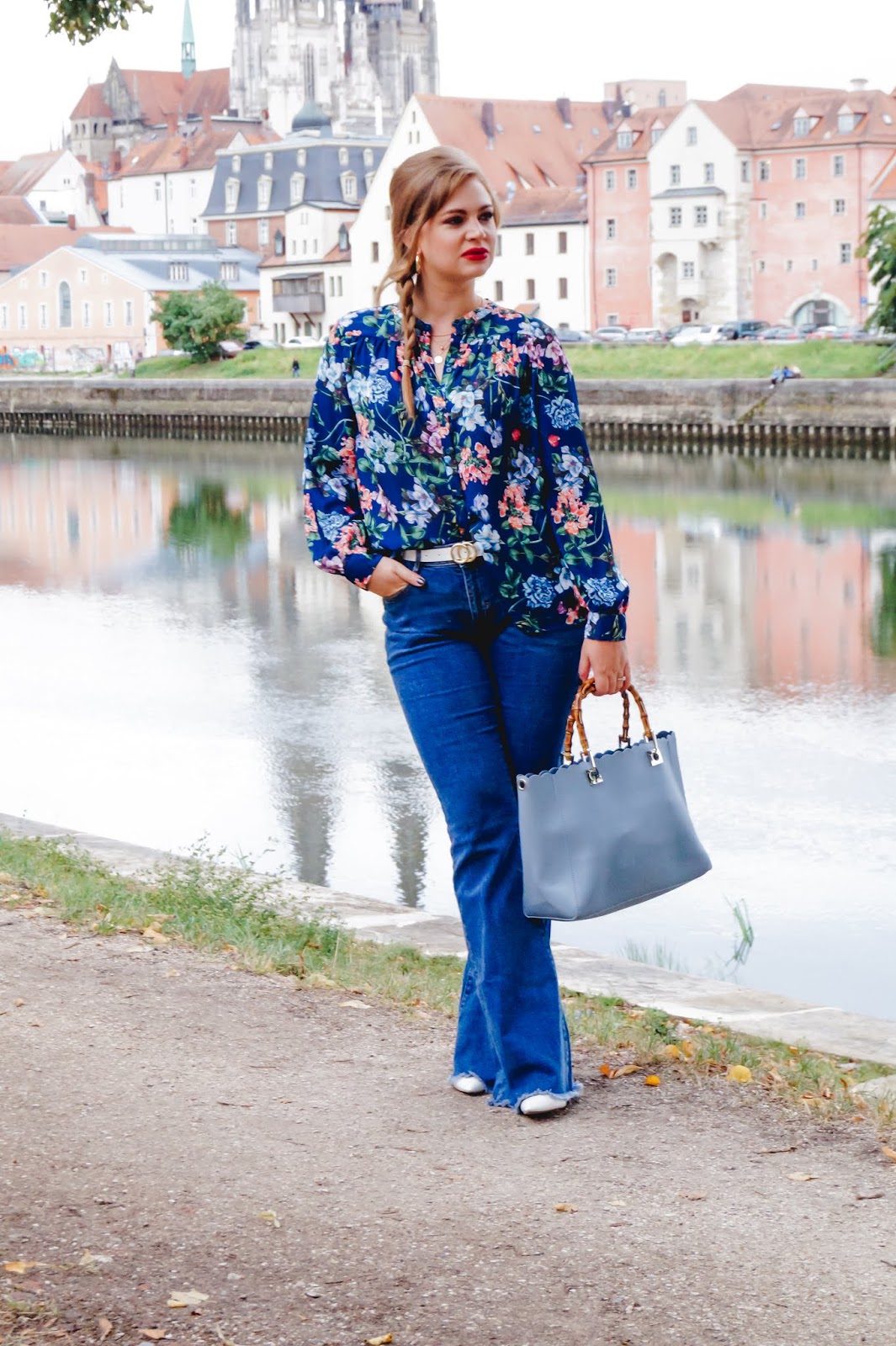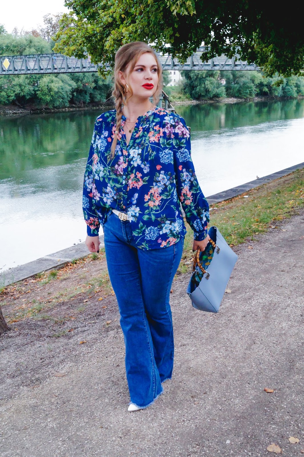 as much as I love flowers I ususally stop wearing this pattern around fall and winter as in my opinion it doesn´t match the theme to well and I am always going mad for plaid so there is usually no room to wear flowers but also flowers can be moody and still enchanting in Fall if you change the whole color theme. I have found this navy blue blouse a few weeks back at the H&M sale and loved it ever since. The blue is so versatile and matches with so many different colors.