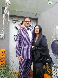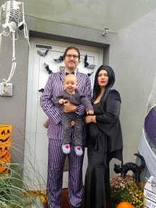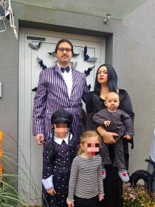 This has been the year of the years I have been waiting for so long – we were finally able to pull of the Addams Family family costume. Everyone has been a character from the strangest family on the planet. We even had little Victoria turn into Pubert, the baby which appeared in the second movie. She looked almost identical, it was the funniest thing. The two older girls dressed up as Wednesday and Pugsley and my husband and I of course as Gomez and Morticia. We even had Thing lend us a hand. 😉