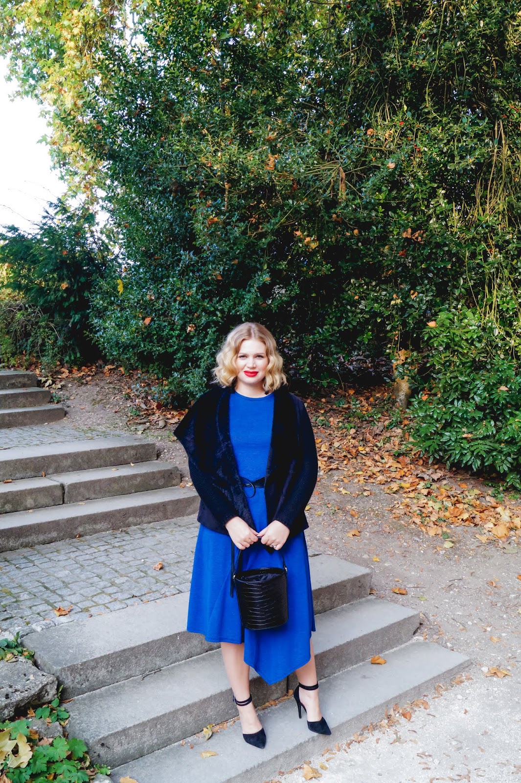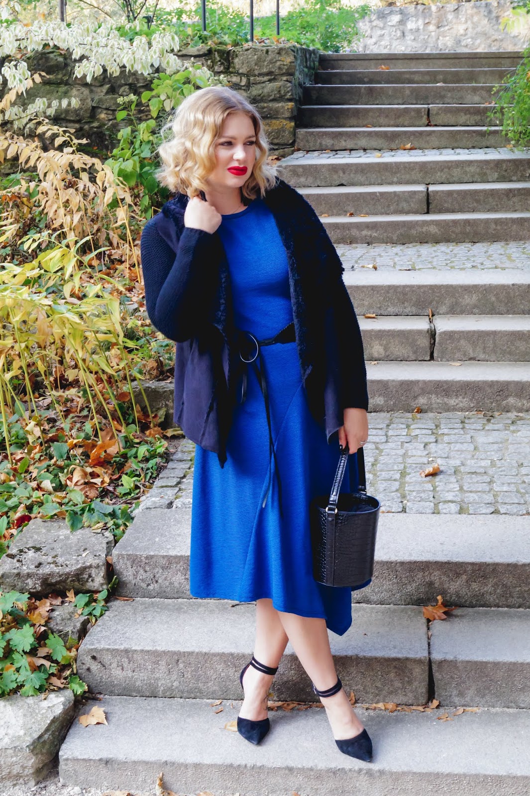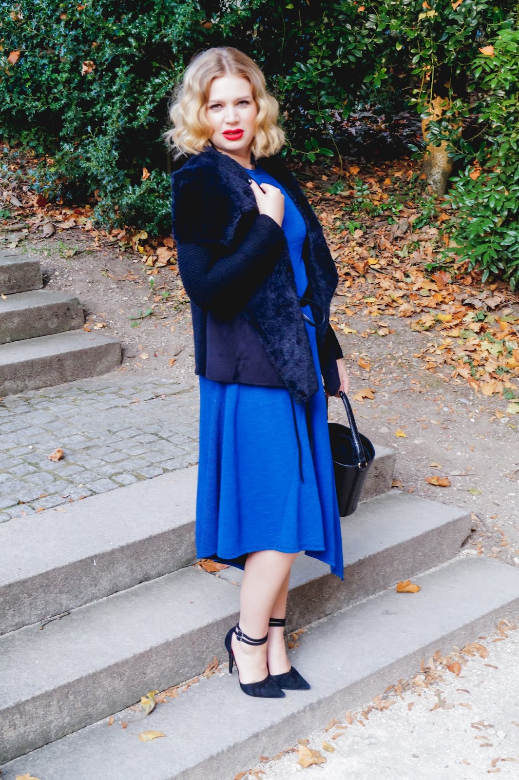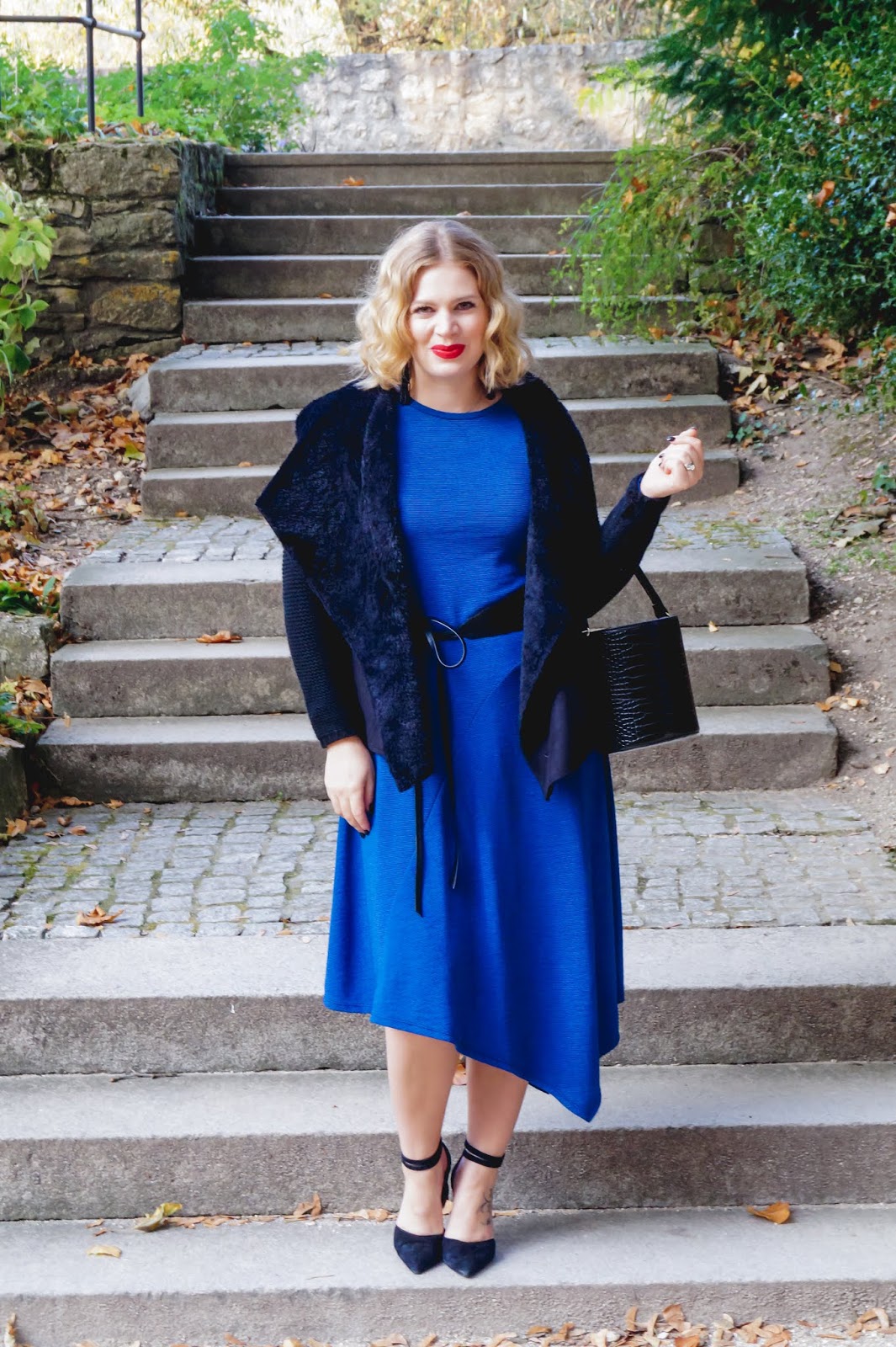 The waist belt really is optional but if you have an hourglass figure (or want one) you can totally use it to accent that. A pair of black heels with ankle straps (my favorite in the whole wide world) rounded up the look and made me feel really happy and special with it.