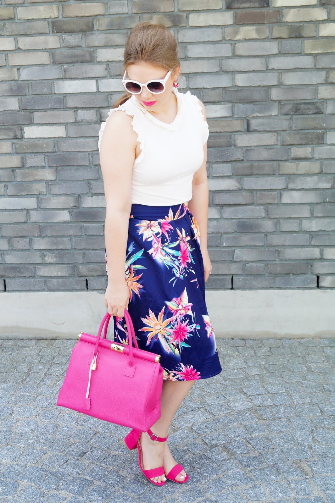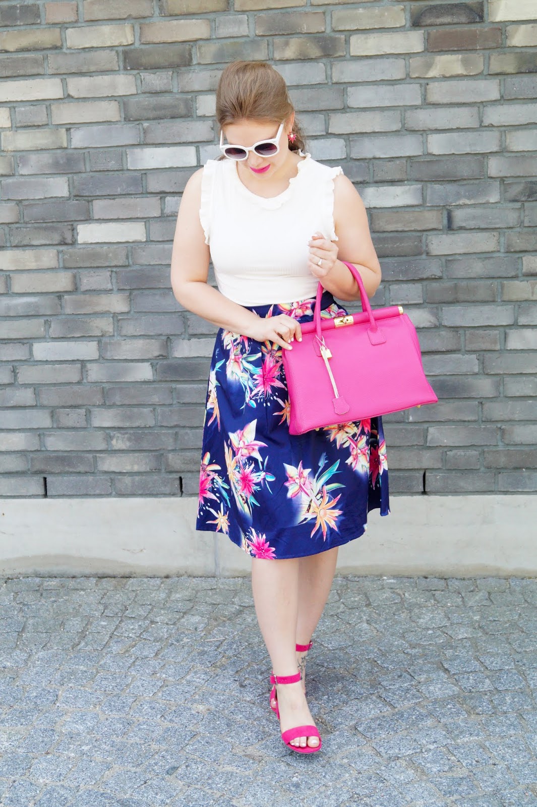If pink isn´t your thing you could also go with the apricot shade in the skirt. This is why I love patterned skirts so much cause you can extend the way you want to stlye them.