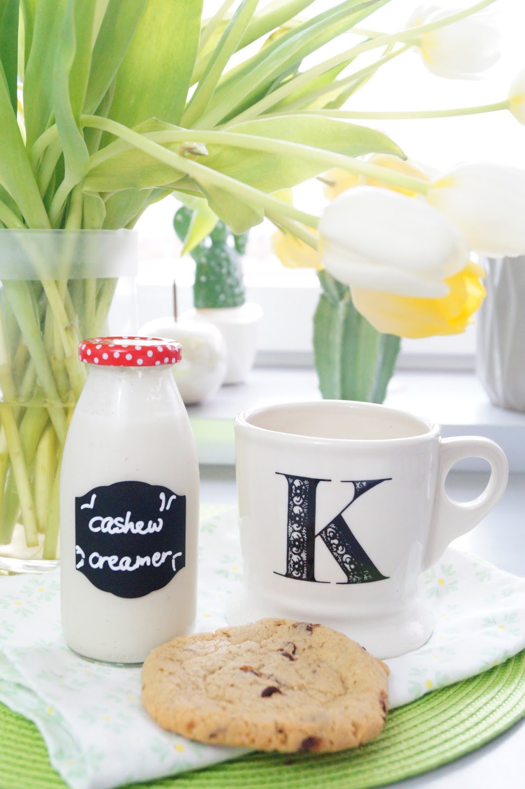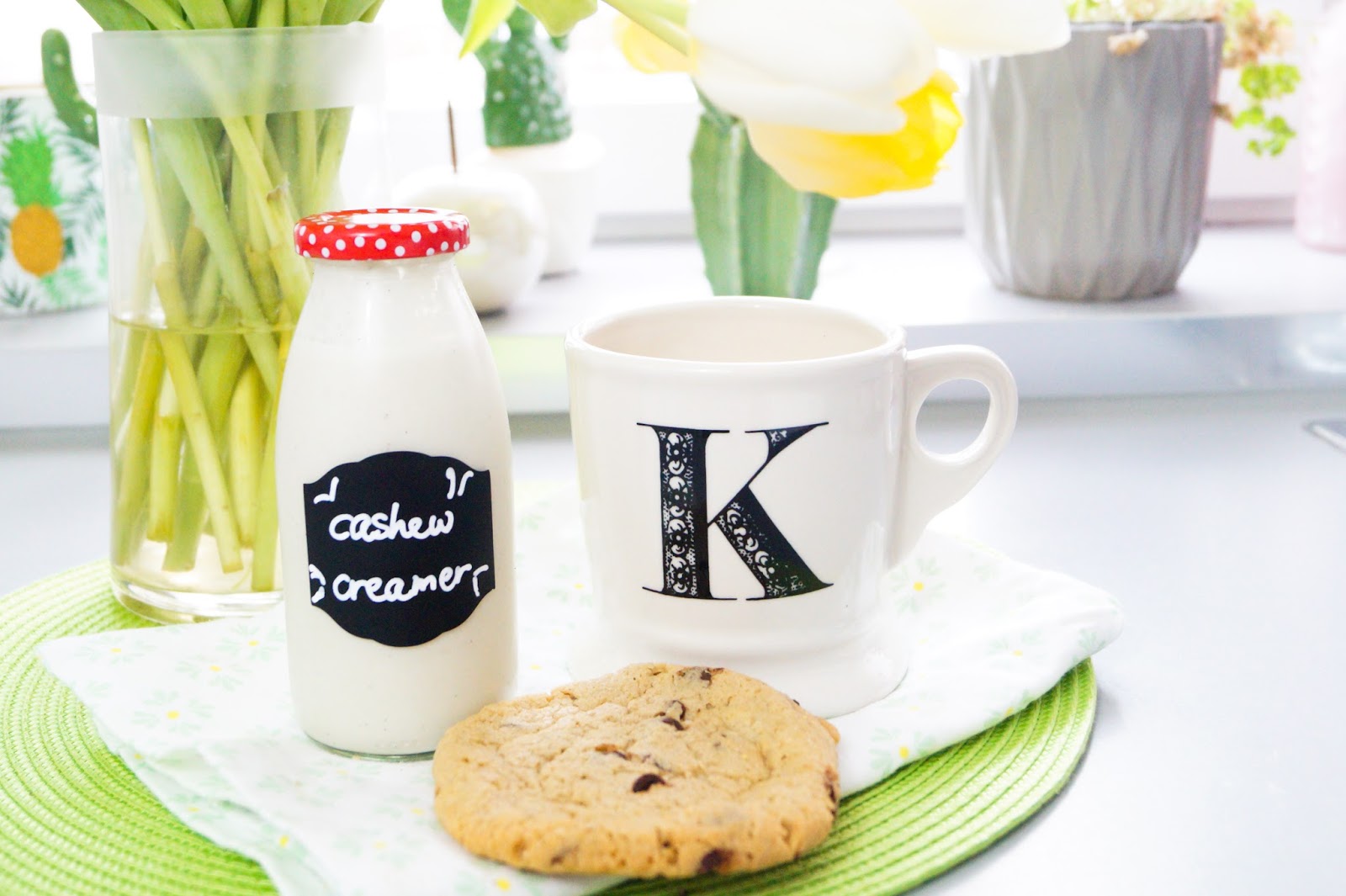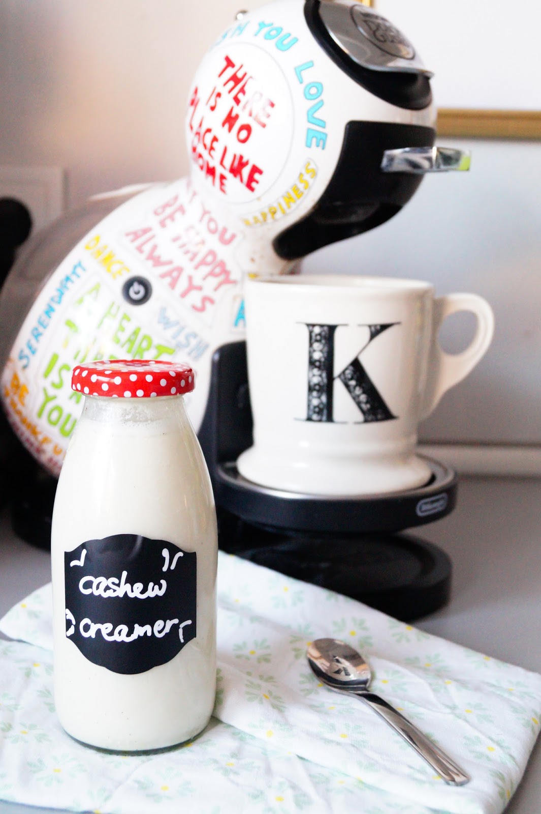 glass jar similar here / Anthropologie mug / place mat / kitchen towel similar here / our coffeemachine Dolce Gusto (we own the older version) / our favorite coffee