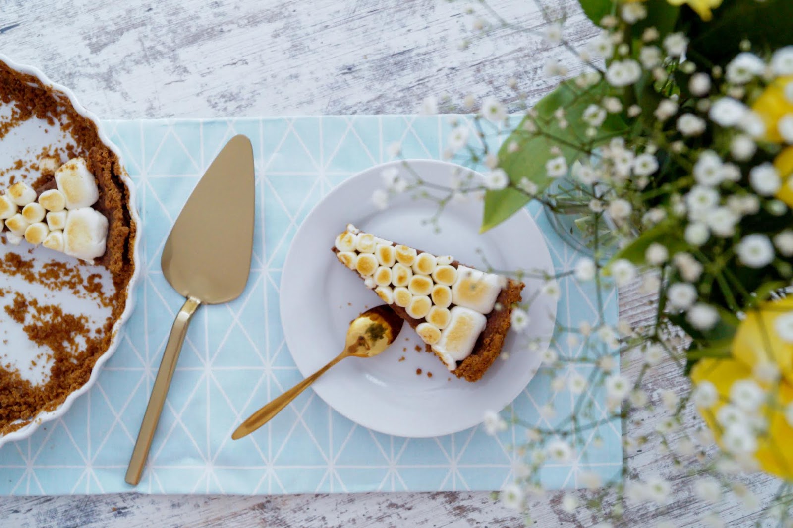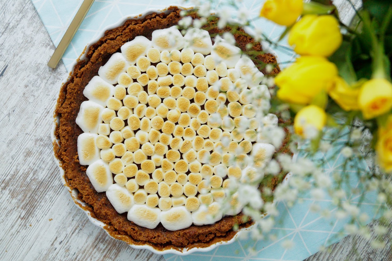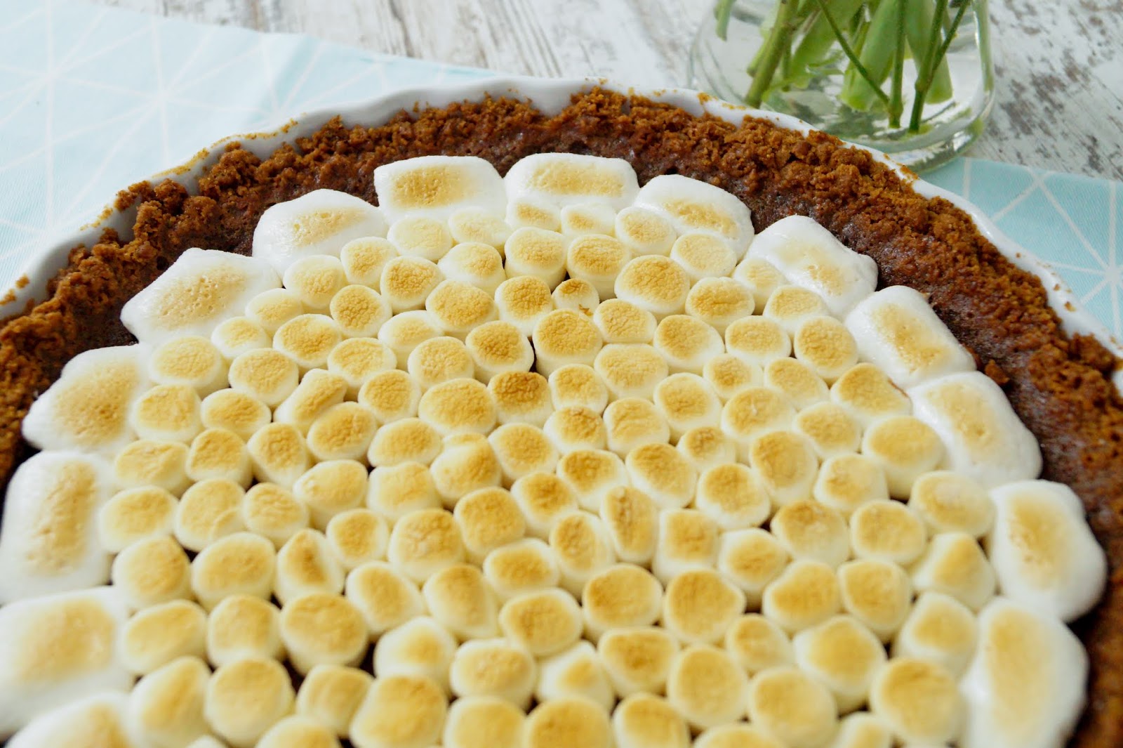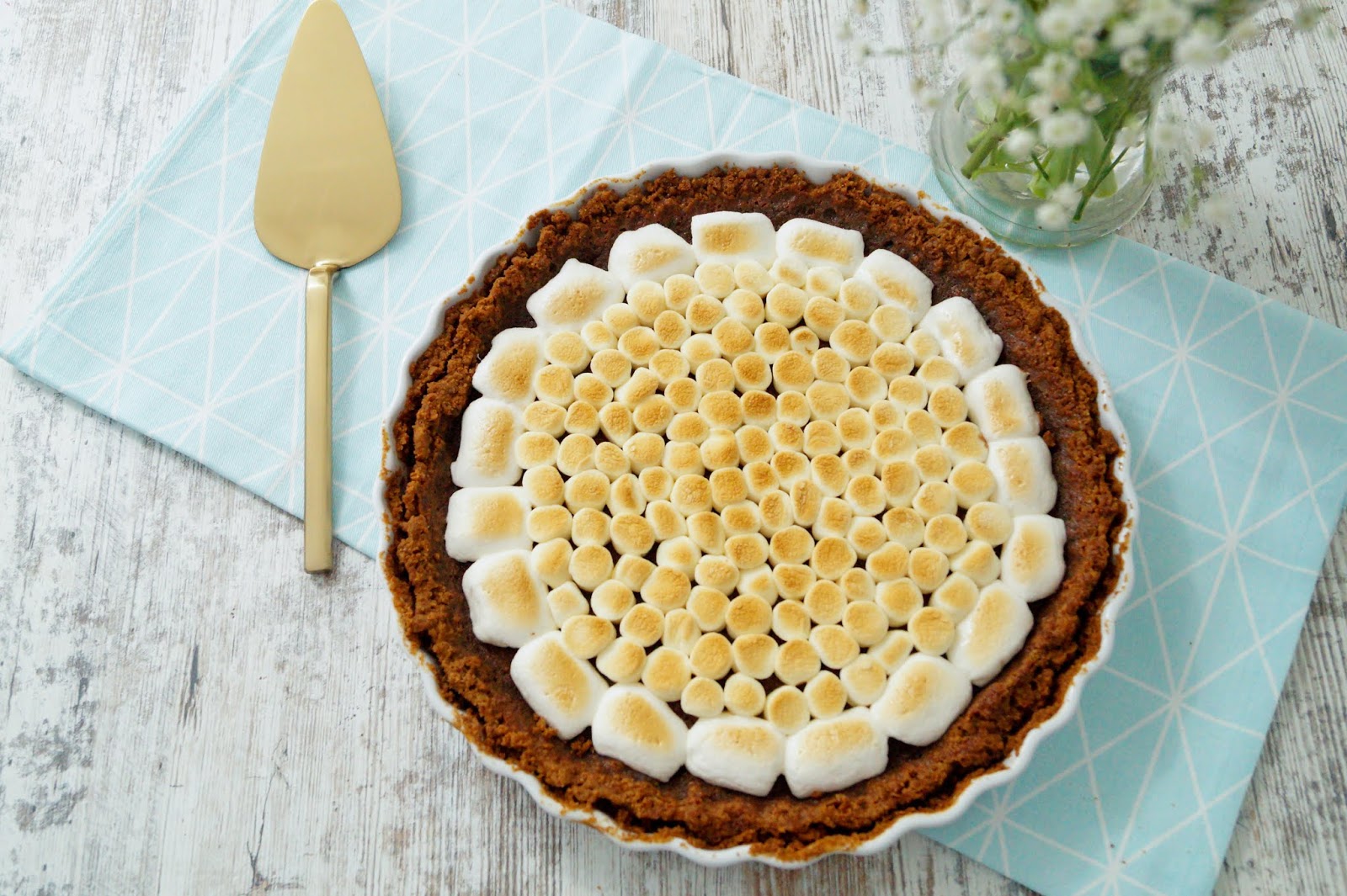 But let´s have a look at this traditional treat. I know that summer is officially over – for both weather and season – so making s´mores over a firepit isn´t quite possibly anymore. So this recipe is for all my summer missing readers and chocolate fanatics. Just transform your s´mores into a pie and serve for coffee time or after a homemade cooked meal.