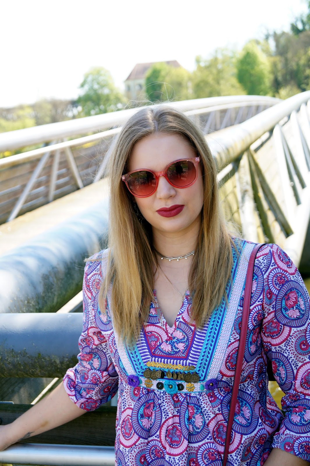 the last days turned out really pretty. We are close to Summer weahter so I was searching for a colorful and airy piece and found this Hippie inspired tunic I haven´t worn in a long time. Usually I am more the pink and orange lover but I loved how the purple color turned out. I paired it with a pair of crisp white jeans and a pair of lavender colored flats. Adding my favorite bag the Coach Prairie satchel bag in dusty rose and I was good to go for a full day of running errands.