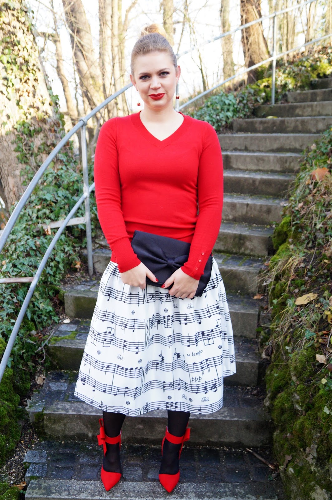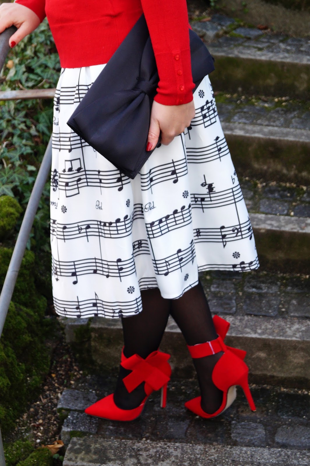 Also a nice skirt is appropriate for Christmas. This a-line midi skirt from Zaful is such a beauty. It has music notes printed all over the skirt. The length is great and I love that it is high-waisted so you could easily tuck your shirt into it too.