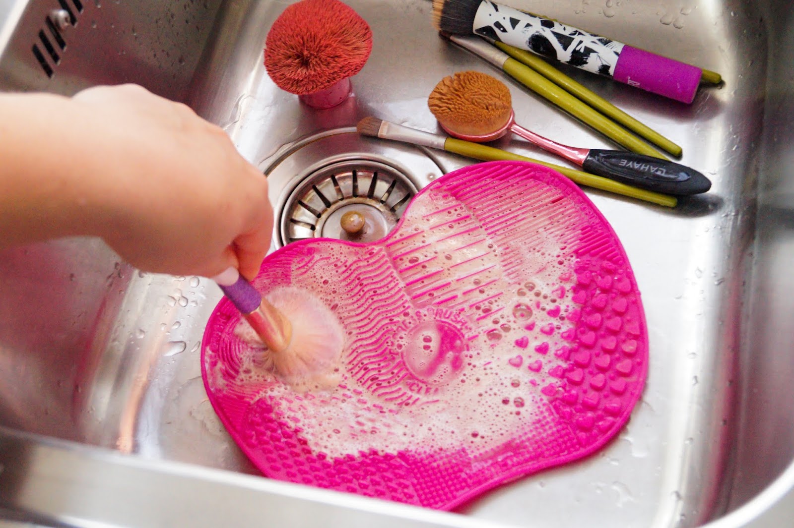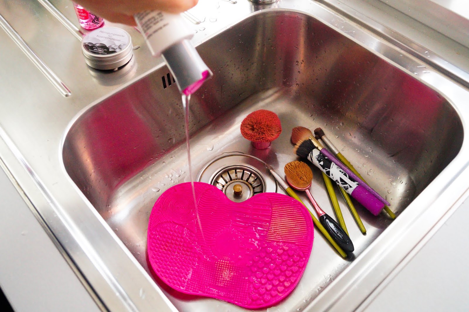 Another thing you want want to use it this pink make-up brush cleaner. The different structures on the pad help so much on cleaning your brushes. Be aware of how much dirt is coming out. This was the actual point to wash my bruhes more often cause you don´t want to apply all this old make-up again and again to your face.