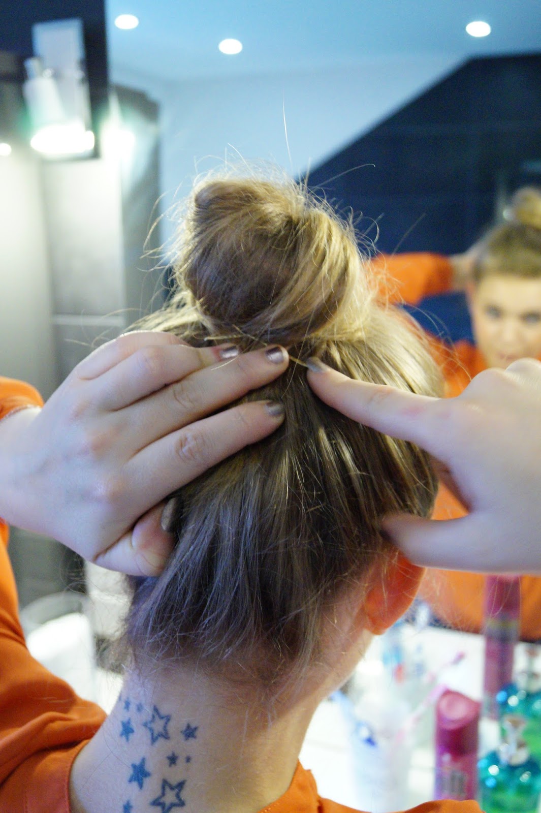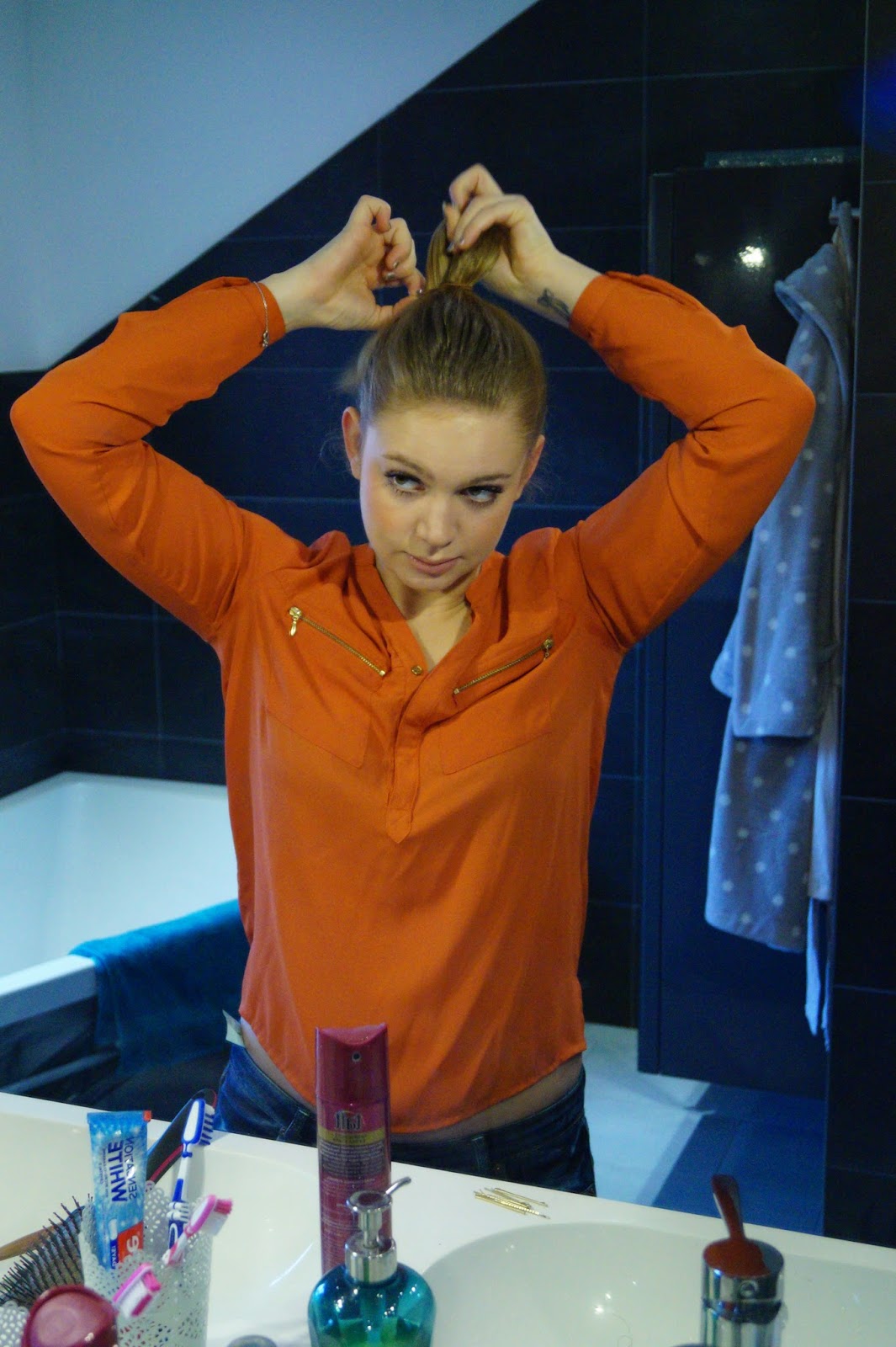 from all of the hairstyles I like a bun the most. You may have noticed me wearing one almost all the time in my pics. 🙂 I think this kind of hair styles works so well for every kind of ocassion. You can wear it on a normal day for running errands or for work or you can wear it in the evenings with a bigger doughnut underneath for more volume and some hair accessories. So you can go from casual to glamorous within 10 minutes. Which can be essential for Parties or dinners. I know when I am hosting a party I am preparing everything until the last minutes and there is almost never time left for me to get ready so this is always a welcome solution for me.