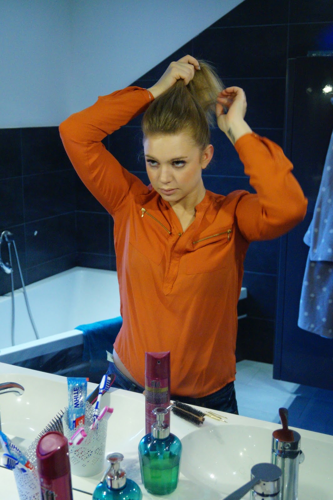 Today I am showing you step by step how to do an undone bun. Yes undone is the new chic. It is pure understatement to look like you don´t care. Also found this in the last Instyle Germany magazine.