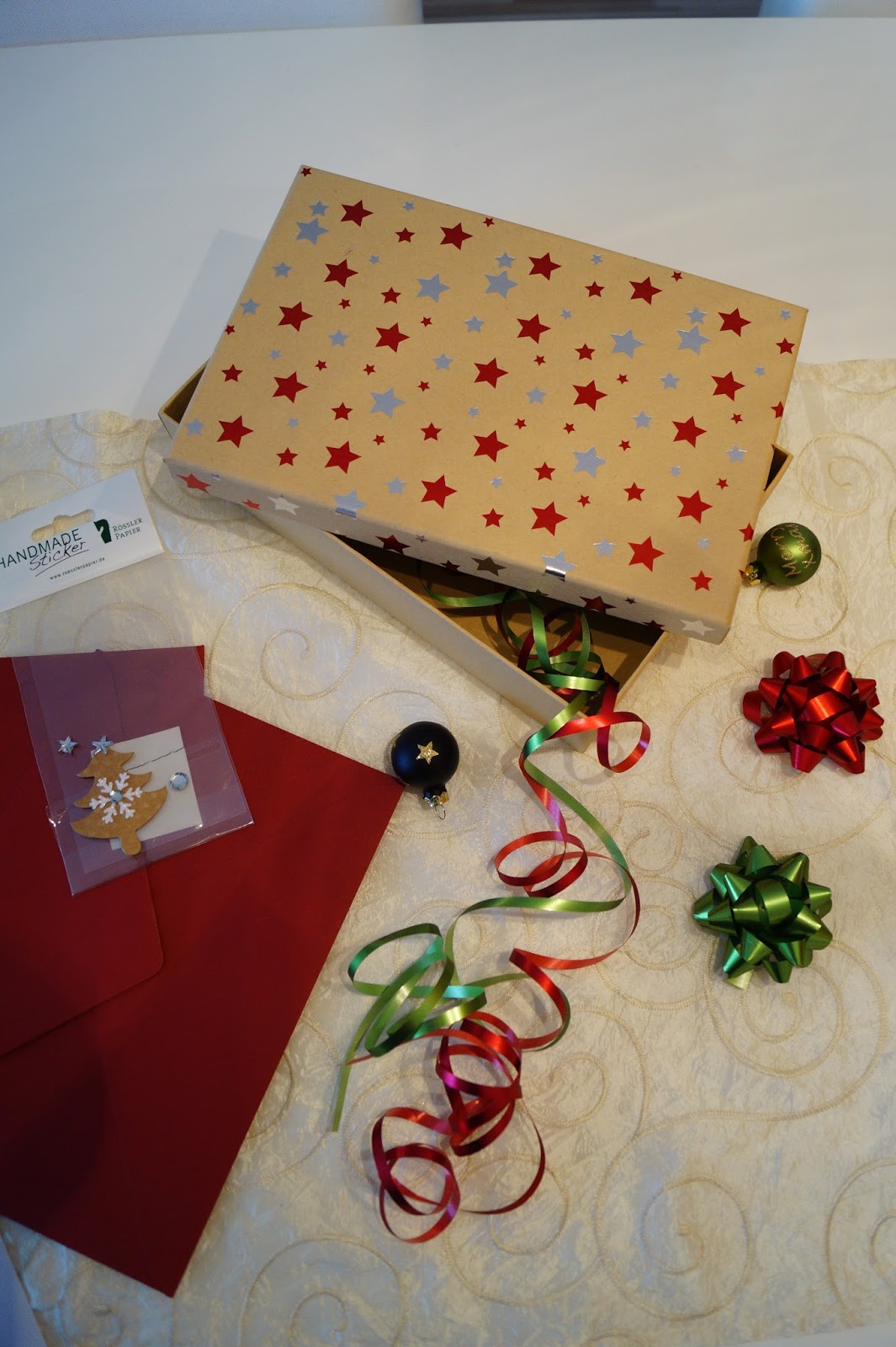 After finishing the computer file and saving it on my USB stick I went to a papery store and choose the paper on which I wanted to print my cards on and also matching envelopes. As all the people I am inviting live nearby I decided to give them the cards personally so I didn´t have to write their adresses on the envelopes so I was able to put those little christmas tree stickers and rhinestones on the front of them which give them a festive touch as well.