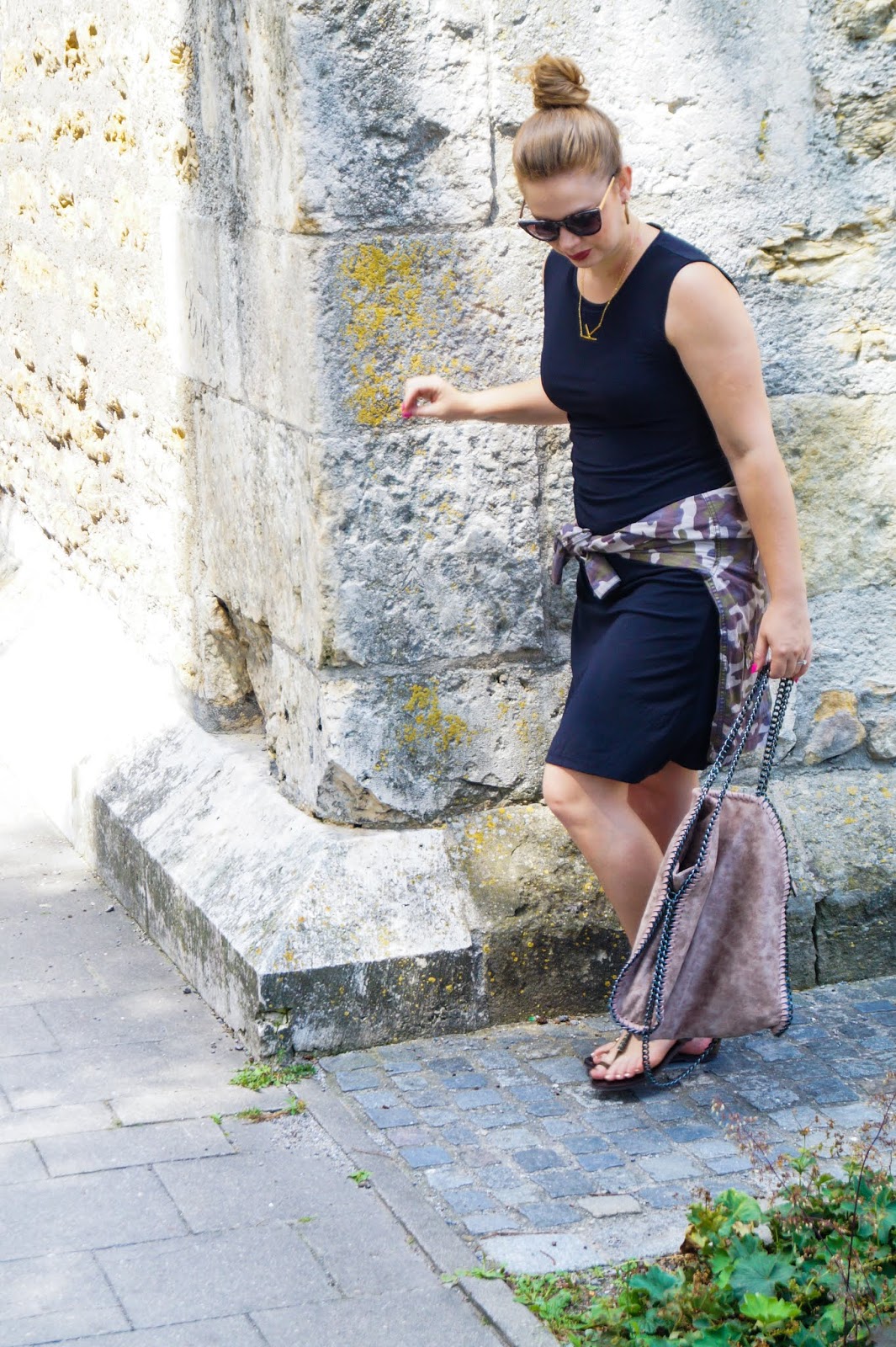camouflage jacket amisu old similar here, here and here / palmtree flats last season similar here and here / bag unknown similar here and here / sunnies H&M / necklace necklesse identical here / black dress sold out similar here and here