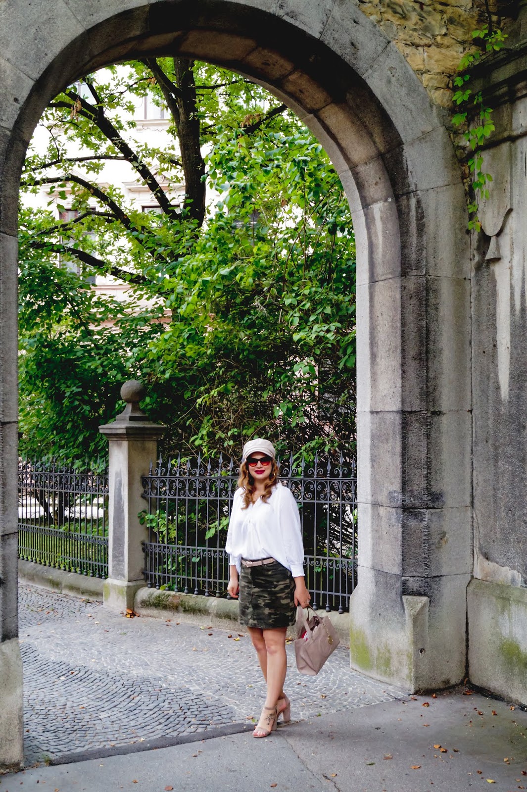 A white blouse immediately elevates every look so this would be a great piece to combine to a camouflage skirt or pant. Wearing a pair of heels also helps. I love this pair of nude sandals I got from New Look. This color is super versatile and also great for transitioning into fall.