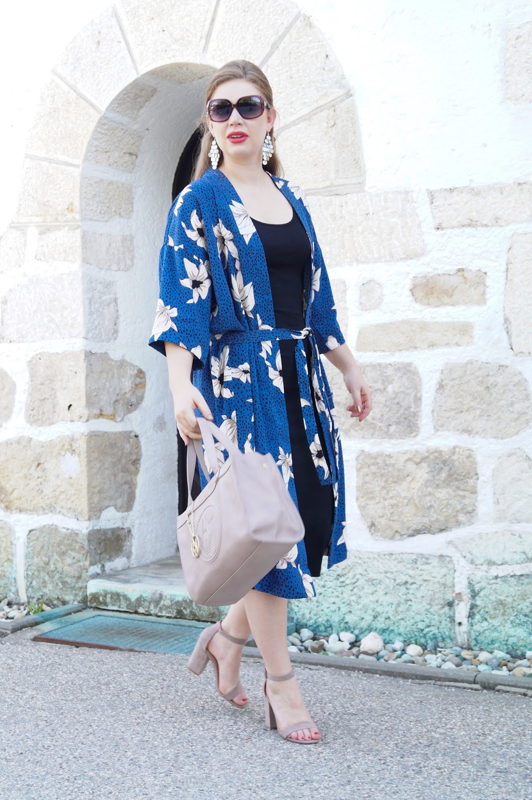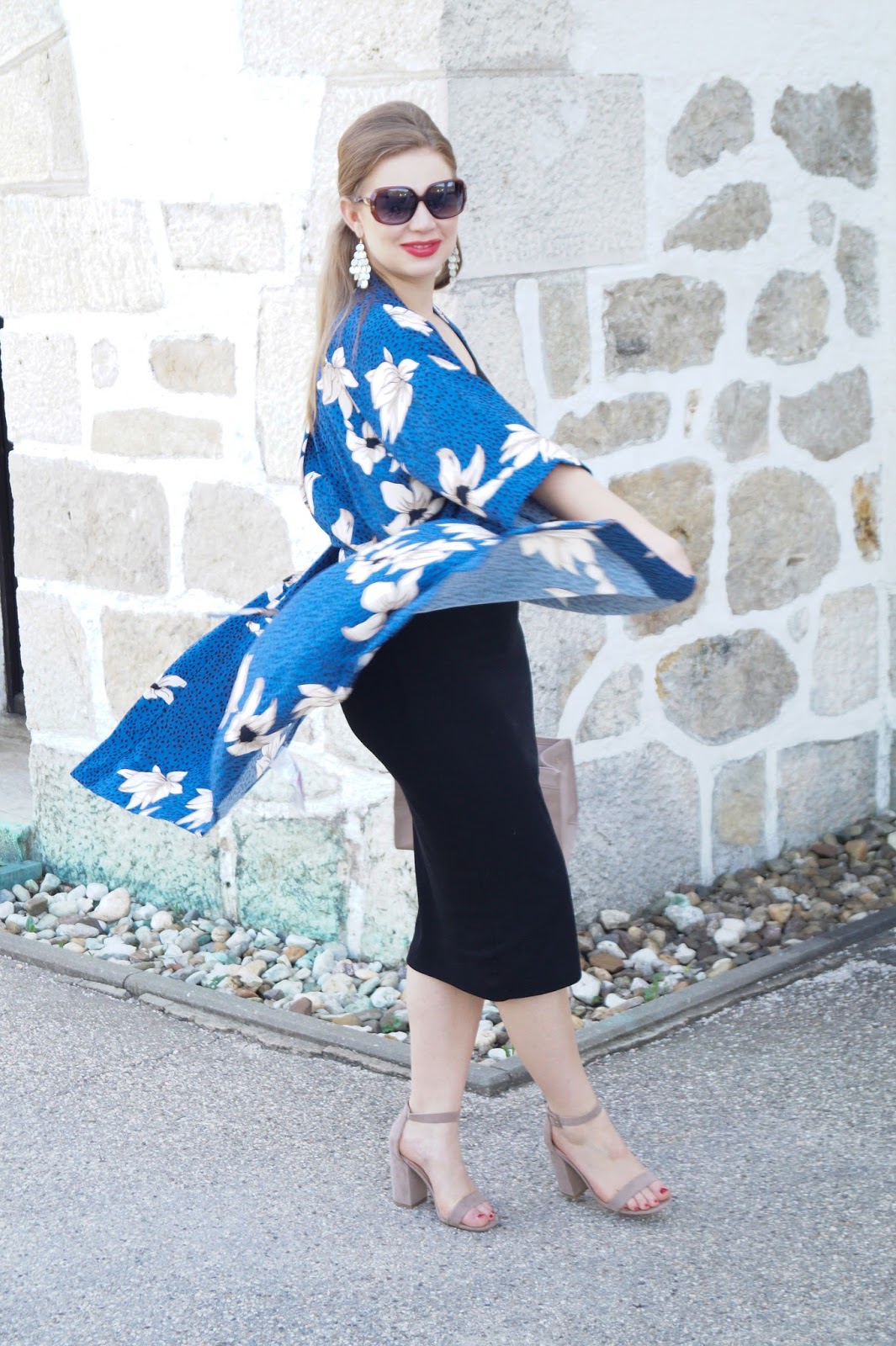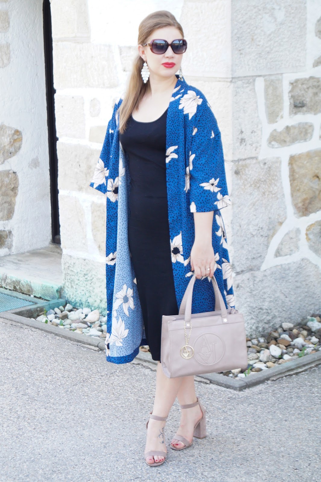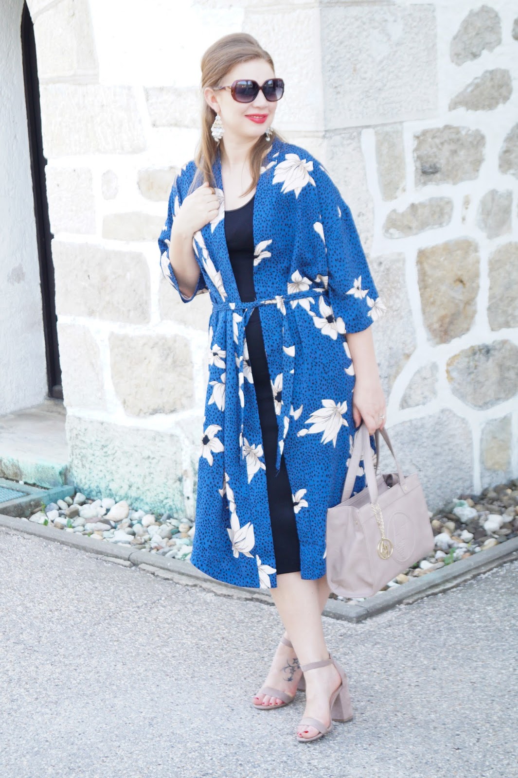 I got my kimono from Only and have loved it till the day it arrived. The lenght is perfect to wear it with a midi dress like I did in the photos above. But there are also shorter versions available. Also the print is so adorable. The richt blue with the big flowers all over spreads japanese vibes all over.