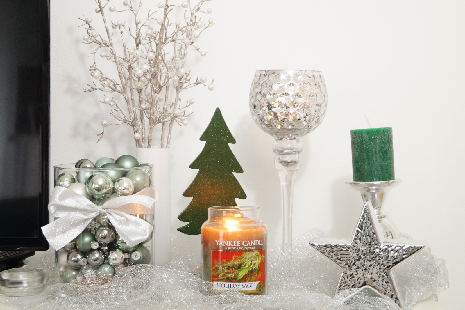 tree amazon / christmas ornaments green Nanu Nana / owl ornaments similar amazon / pillow case wonderful time H&M / velvet pillow case H&M / snowflake pillow case H&M / plaid Biederlack / candles green Nanu Nana / Yankee Candle Christmas Garland / candle holder green Galeria Kaufhof / Yankee Candle Holiday Sage amazon / candle holder silver Galeria Kaufhof / candy canes amazon / tree skirt amazon / christmas ornaments white / candle holder silver Nanu Nana / rustic candle emerald green Nanu Nana / tree top Nanu Nana / silver star Nanu Nana / tray grey Nanu Nana