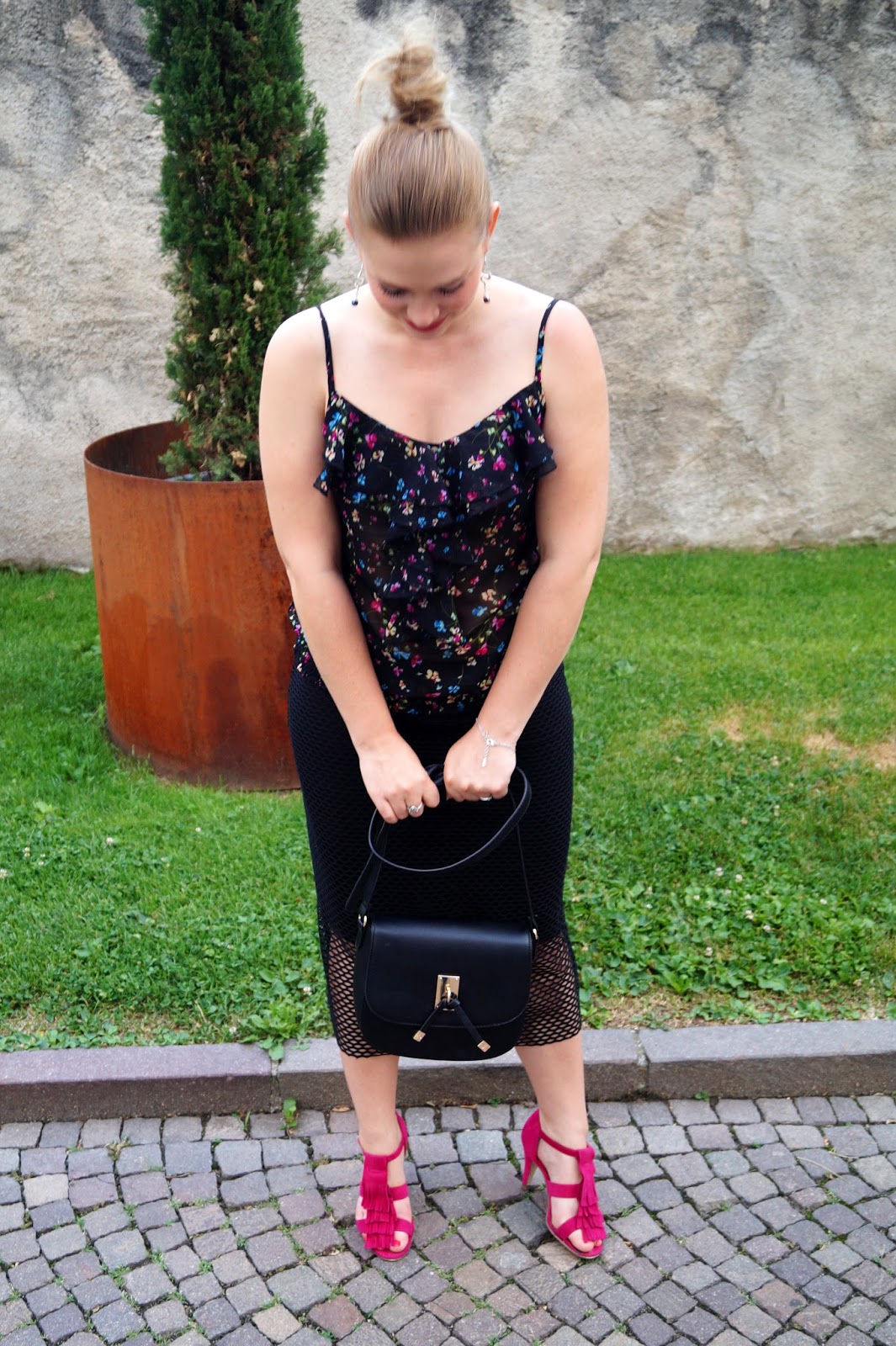 But let´s get clear with this. In my opinion it is all about balance. Wearing black in summer is possible and can look amazing on glowing tan skin. As fabric you should take a lighter material like silk or chiffon. This is airy and flowy and gives you this summer vibe. Also why not adding some cut outs or embroidery to the item to add some flair. And last but not least adding a print with vibrant colors like a bold pink can really help too.