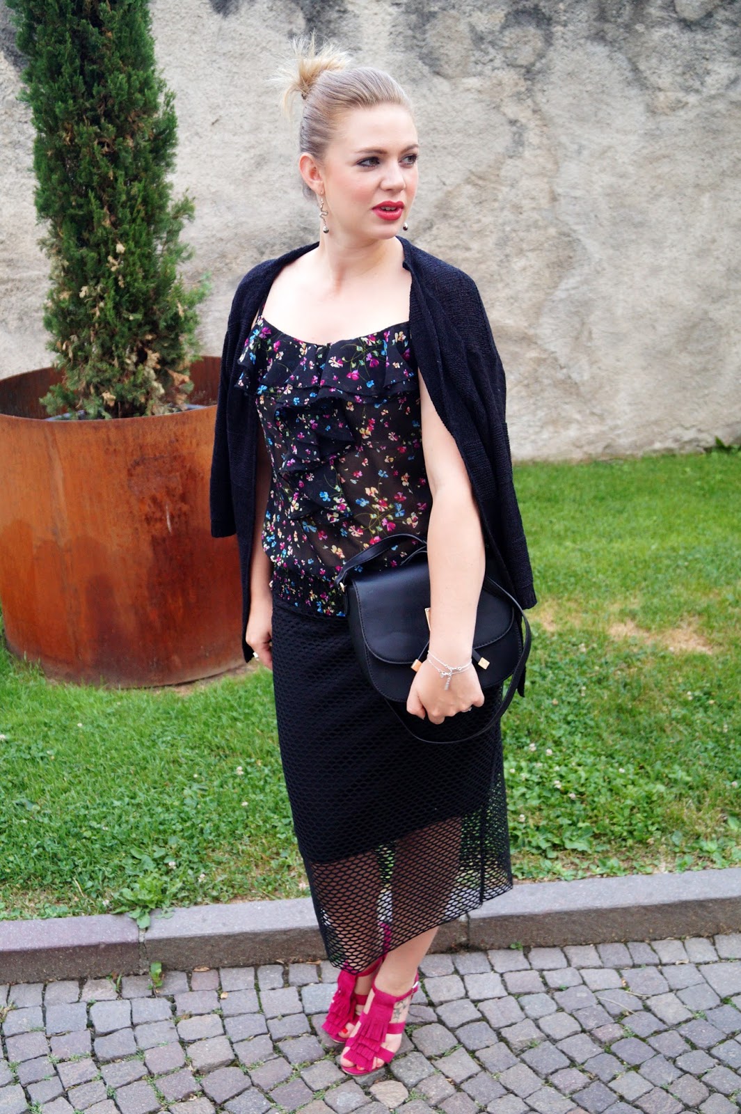 skirt H&M similar here, here and here / top amisu old similar here, here and here / heels old similar here, here and here / bag Carpisa sold out similar here, here and here / cardigan H&M last season similar here and here