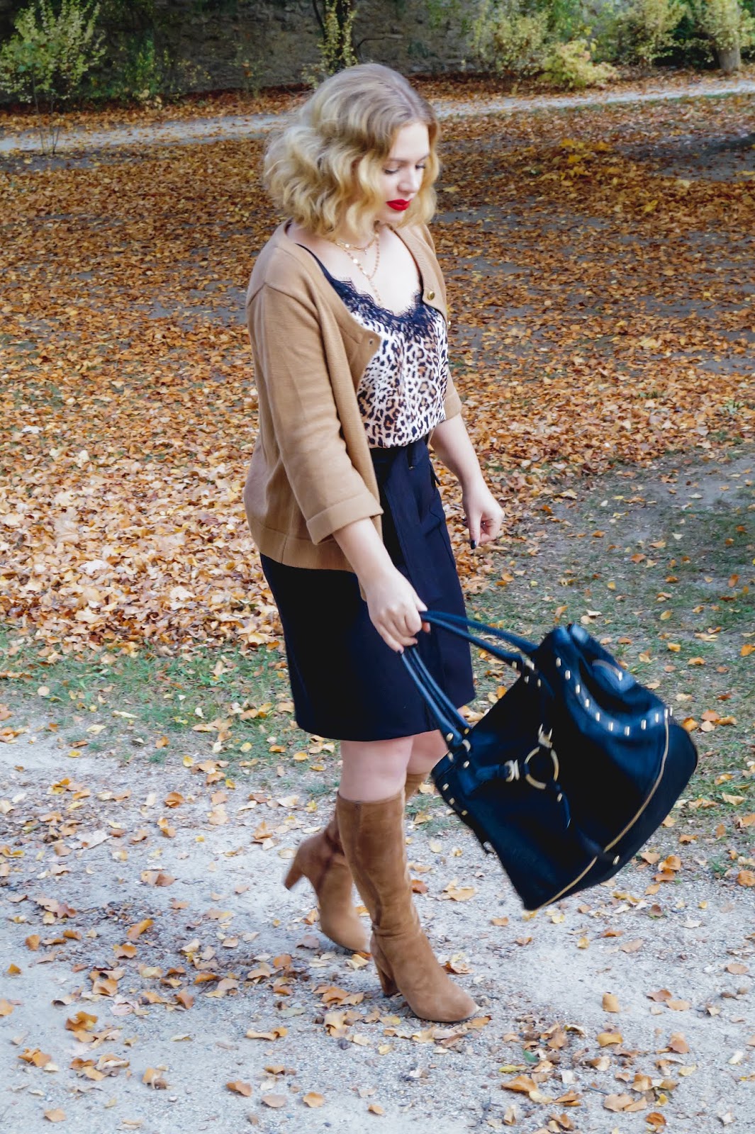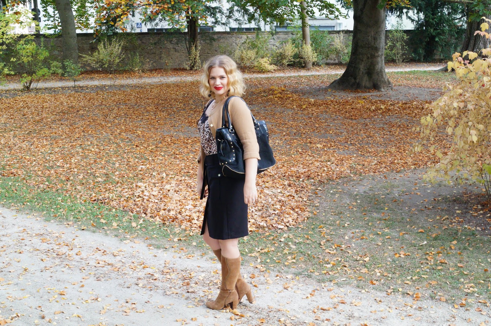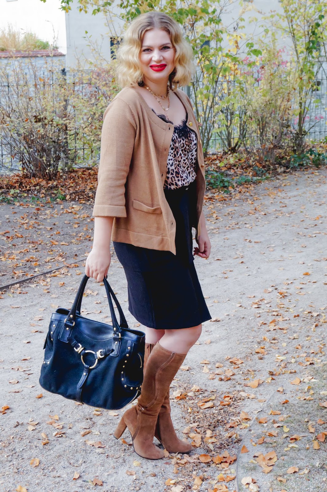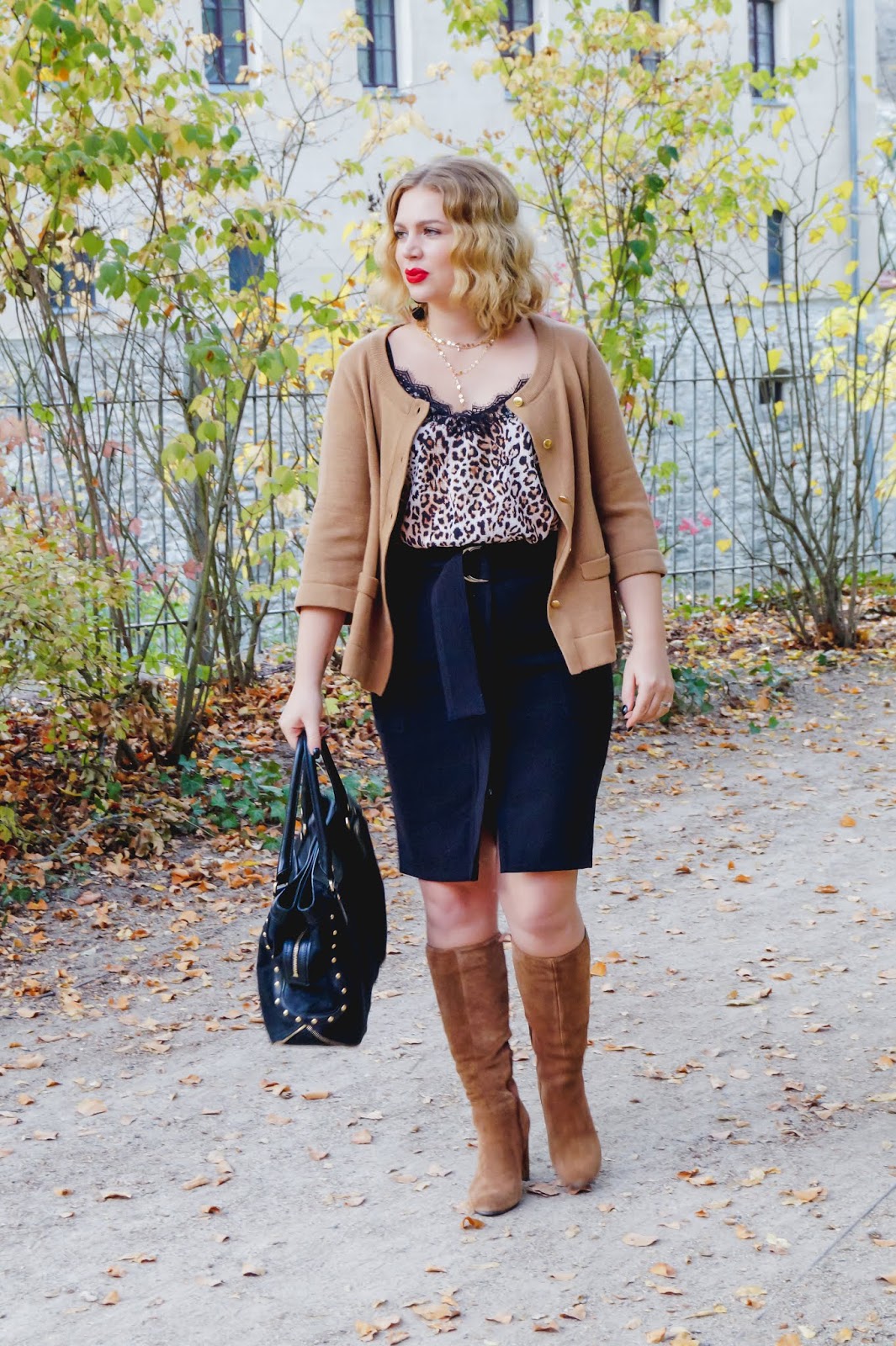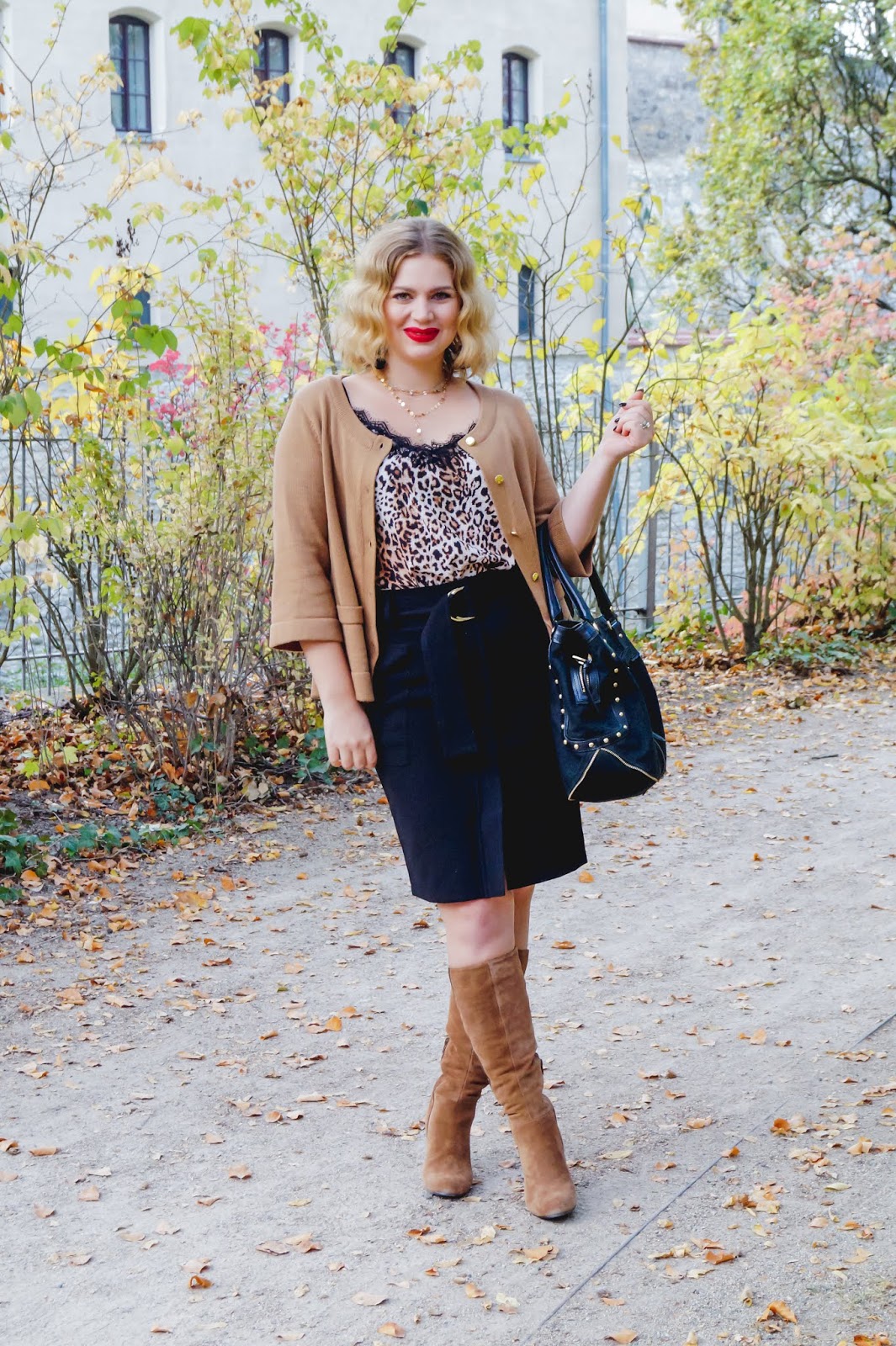 I have bought this adorable leopard print camisole with lace detailing on the neckline on our honeymoon but there are plenty of other options so I have linked a few below. The cardigan is H&M but and old one but they have one in particular at their stores at the moment (linked below) which is super soft and has the perfect beige color. Probably gonna get this one on Black Friday. A black pencil skirt always fits the bill no matter what you want to wear. So this turned out pretty well. I honestly wasn´t sure about going black at the bottom but in my opinion it looked best and also fit best with the boots. They are from Zign and I totally love the suede and the metallic leather stripe detail on the side. Also the block heel is perfect for walking around without getting tired (if you have wider calfs or want to wear an extra pair of socks be sure to go up one size).
